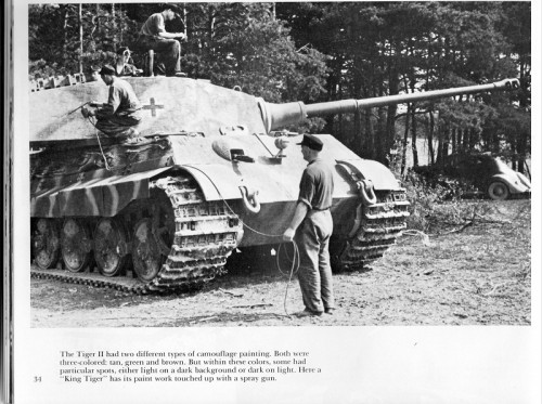 So to me the pattern I used was a common picture with different tones,but to be sure I am willing to jump in a time machine and observe these guys painting this King Tiger above and asking them why are you painting your tank like that?