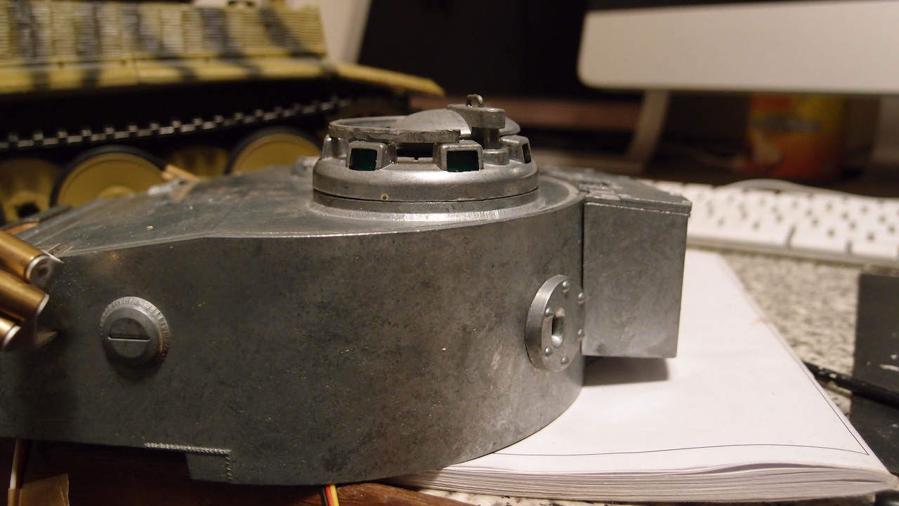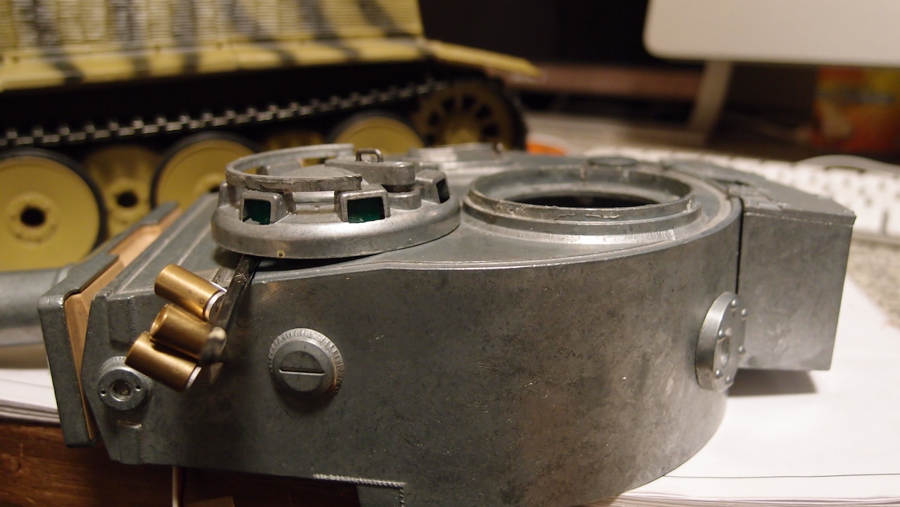 In the apparent fervent race a couple years ago, for members to add as much 'metal' to their tanks as possible (and even falling for, and buying, tanks with the 'all-metal' label, that were anything but...) :/ , I put metal turrets on two of my Tigers. With hindsight, I wouldn't have bothered. Plastic ismuch easier to modify, and it puts less strain on the upper hull, geartrain, MFU etc., than its metal cousin.