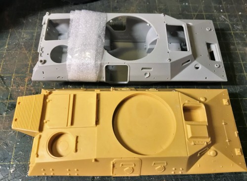 All main joints are sanded. The rounded main hull joint around the vehicle is reproduced.