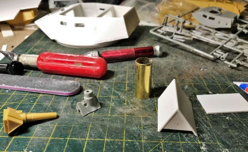 The largest gaps are filled with plasticard pieces, and putty is applied all around.