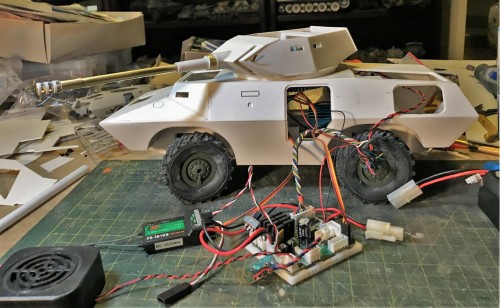 Here are the muzzle brake and turret electronics with a video at the end of the post, minus the coax machine gun as I am awaiting a fibre optic order.