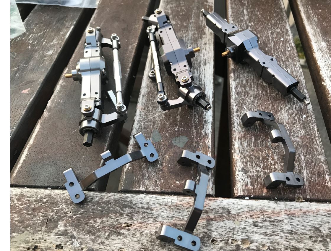 Of the 2 good types below, you can notice the differences between the two. The bottom one is more square and older, the other more rounded, thinner and seems newer. The feel compared to the plastic ones is no comparison, so smooth and more solid. Its quite exciting to work with these, feels like the real thing in miniature, specially with Titanium color. But they are a lot more heavy than plastic. They will bring realistic weight to the vehicle but will be hard on a light WPL single blade leaf spring suspension. I recommend a suspension, motor and drive shaft metal upgrades to go with these. The two types below can be purchased as a set of 3 (front, mid and rear) for about 60$-80$ range with free shipping and pull rod adjuster for steering servo. I think its good to try. But once you go metal, it is difficult to go back to plastic.