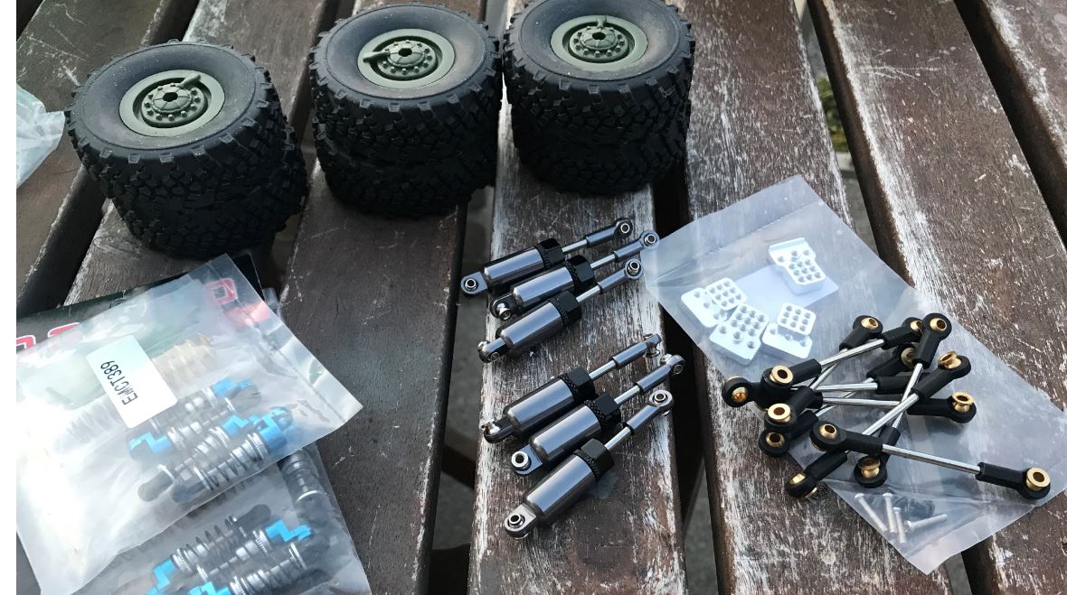 Suspension: I do not want the leaf springs, I was not happy with them for the V-150 build, too weak and leaf springs are not used on the TPz anyway. Therefore, I want to use shock absorbers. The TPz has the axles holding in place with pull rods, i have a bunch of various quality and size to select from.