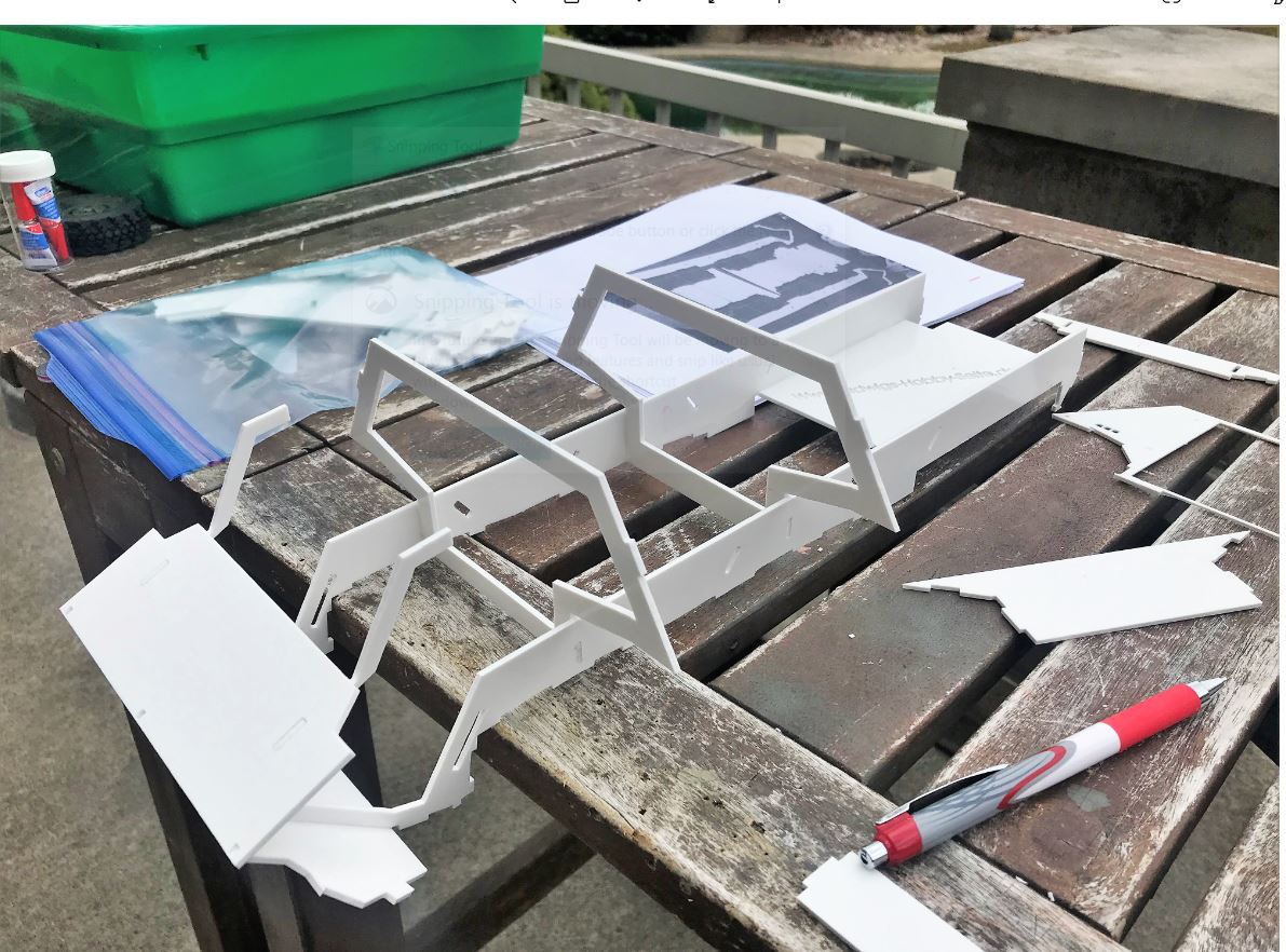 The Ludwig base kit contains no less than 12 polystyrol plates of pre-shaped parts, with limited instructions provided by some pictures on the website. It is left to the builder to ponder his options and figure out all the mechanical and electronics arrangement.