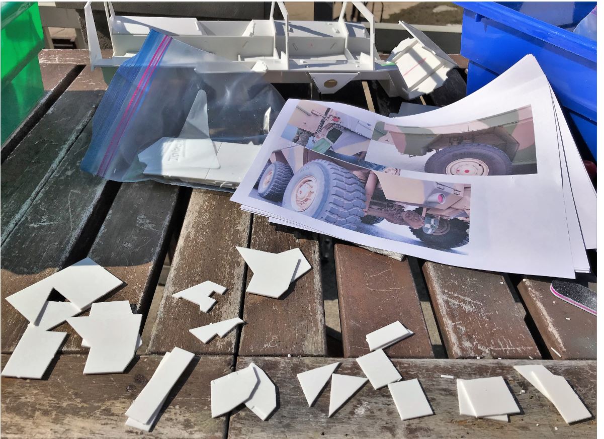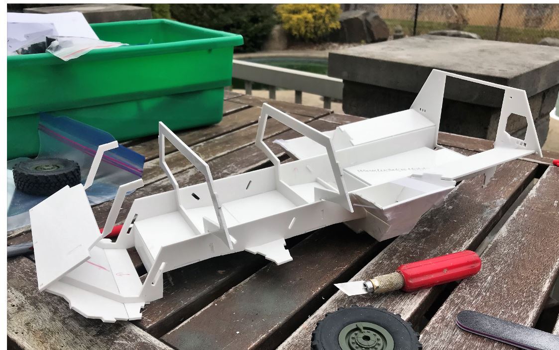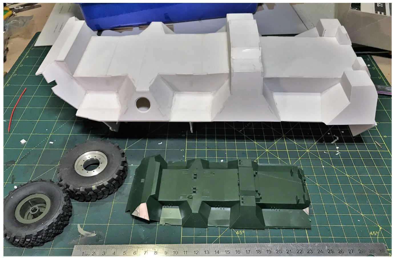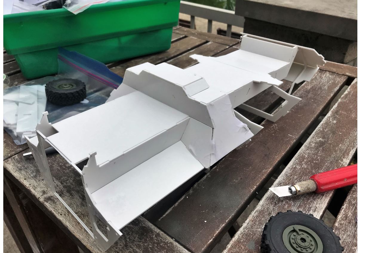 The assembly is going well. First thing that surprises me is the size of this vehicle, its huge at 44cm (17 inches) long. It also seems much wider than a WPL truck or V-150, that could be a problem.