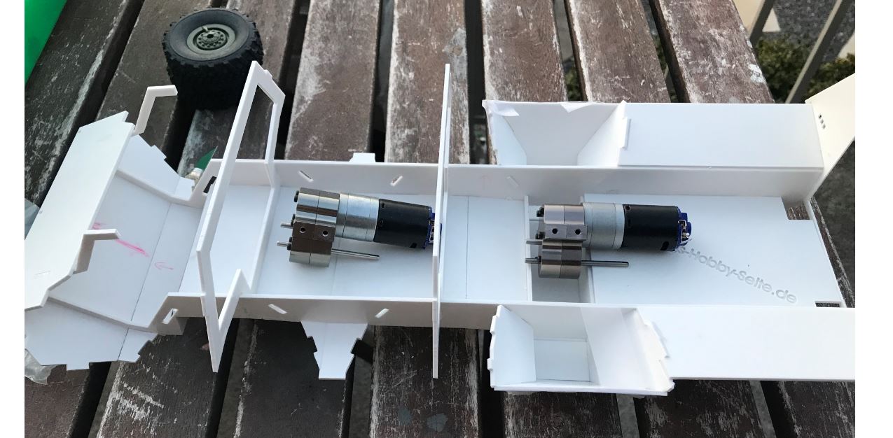 Motorization; the plan is to equip this vehicle with twin motors and gearbox, it is a bit unorthodox. One set is for the front axle, the other set is for the middle and rear axles.