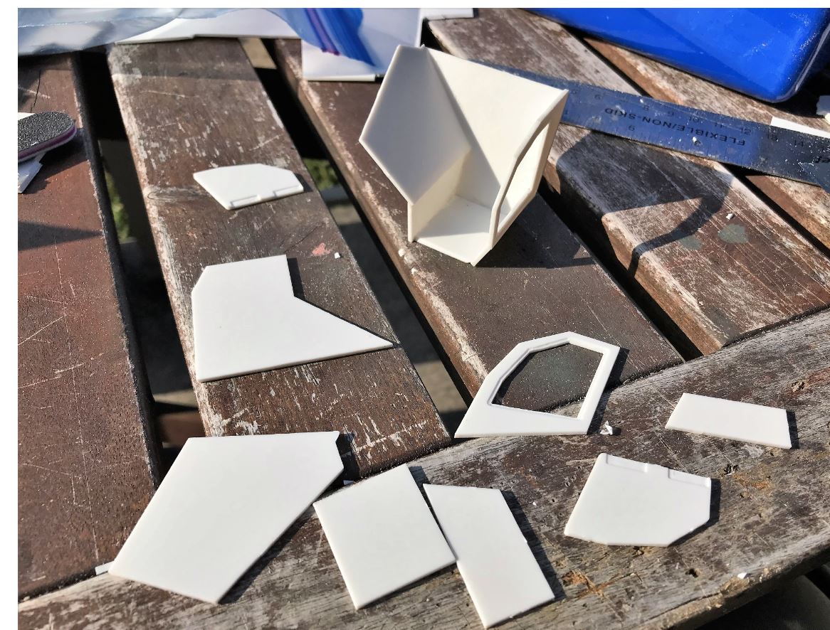 The builder of a Ludwig kit must avoid the temptation to pour whole tubes of putty in the gaps. It would take an eternity to dry, would not be solid and would easily crack. My method to fill the gaps is to throw in residual plasticard strips with lots of superglue. It dry fast and can be sanded within a few minutes.