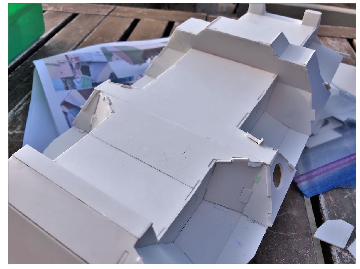 I dislike interlocking parts. I think It would be better if Christian drop these, maybe simply put in some markers and leave the parts flat. It would make the building easier. Big gaps need to be filled and the interlocking does not really help, its actually much of a nuisance. I had to remove some in order for the parts to fit into each other from 3 sides.