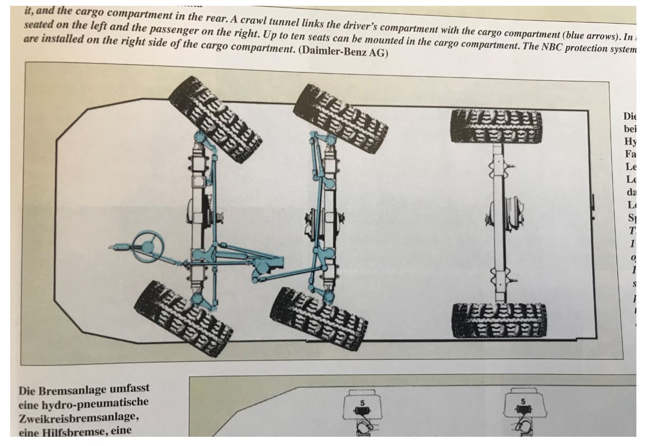 The Revell 1/35 Fuchs kit instructions provides a good view of the axle and pull rod arrangement.