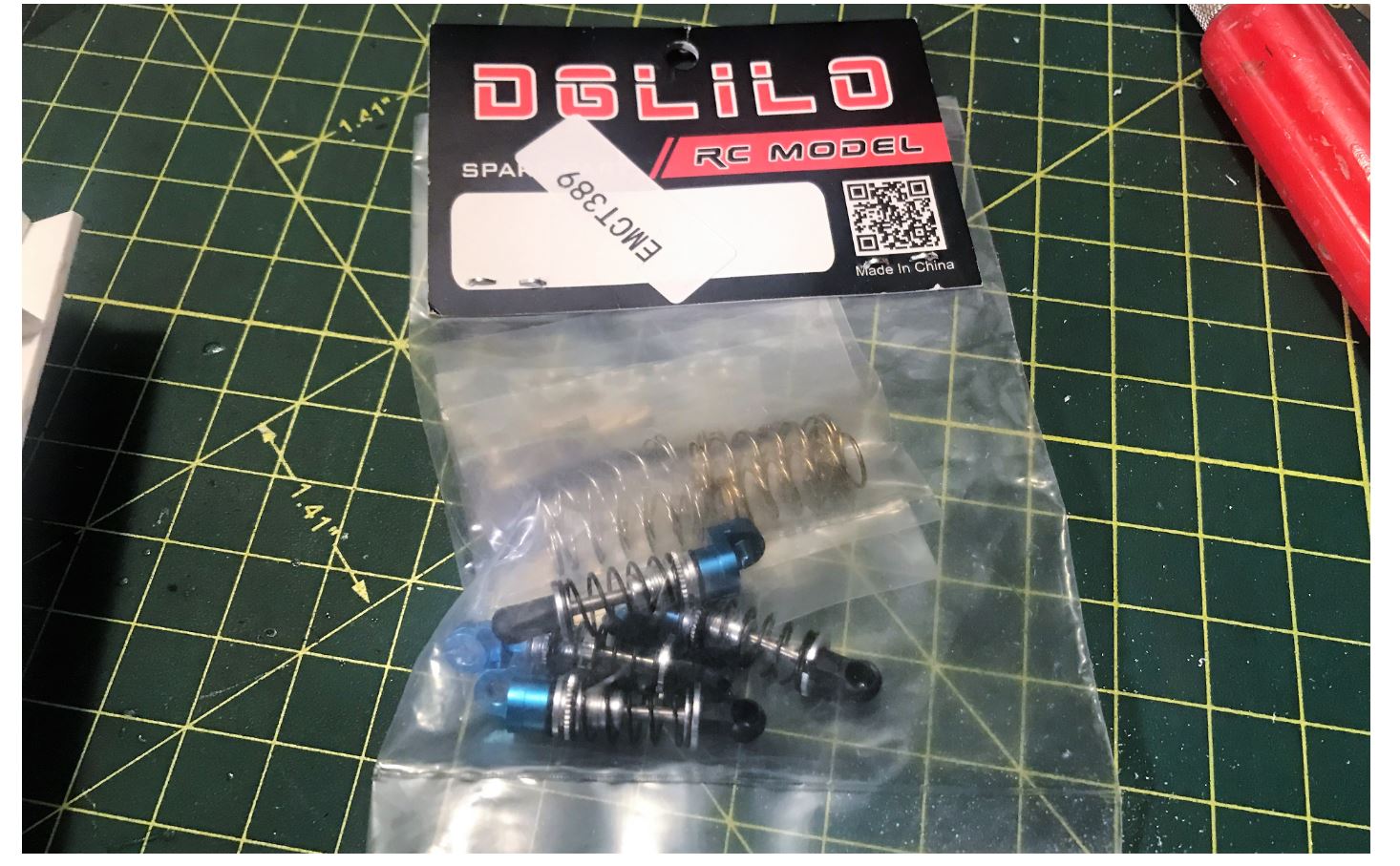 I also determined that the dampers would not be enough to keep the suspension strait. Like the real Fuchs, I picked up some RC shock absorbers to work in pair with the dampers.