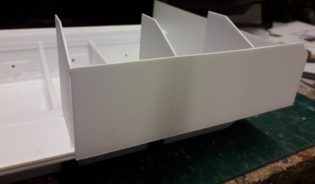 Front Cross brace bulkhead added and start of the hull front make up including headlamp recesses.
