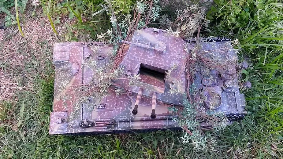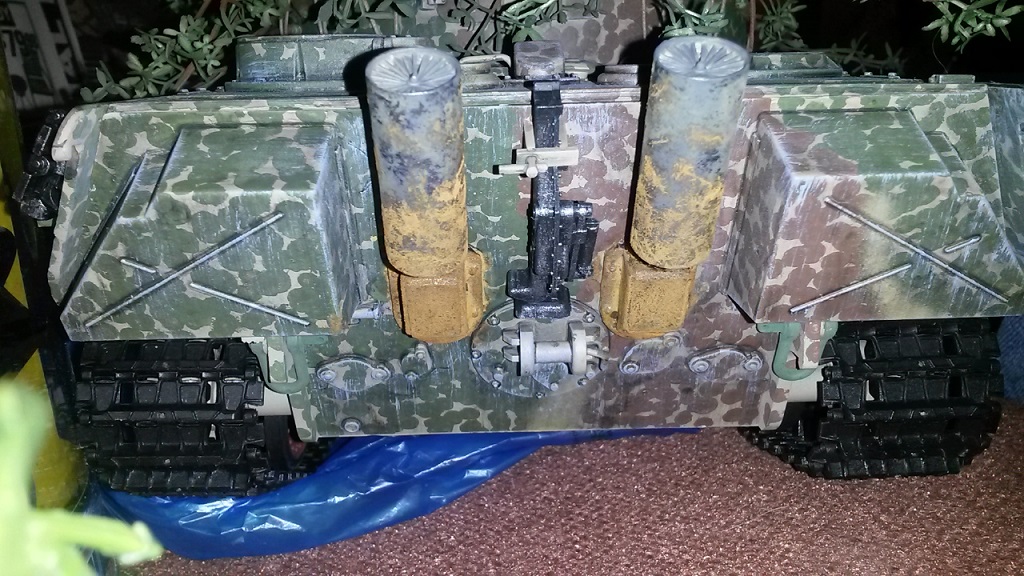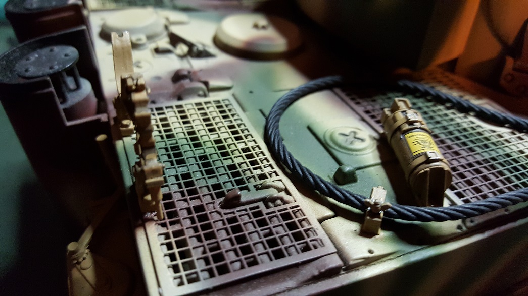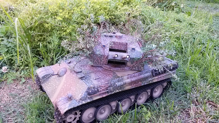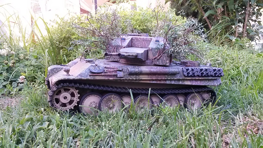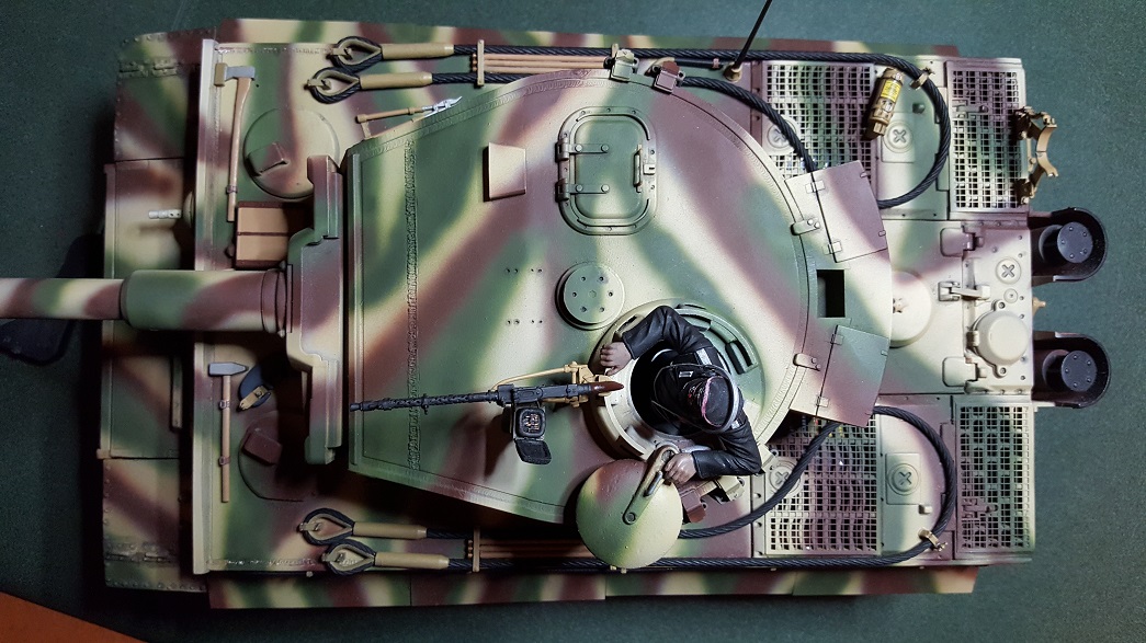 Maybe you are out of tanks but I can enter one that we both put a lot of time into, Terry. ) Here is a late War Tiger 1 originally built by Jackalope and painted by him from Heng Long, Tamiya and Hobby Boss parts. After I received the tank, I did a detail job and worked in the interior adding different servos, smoker, electronics, ( Clark TK-24 ) and speaker\sound from Maxmekker. This is a solid Tiger and the best running tank that I have. It is a heavy metal ground pounder! Here are the required photos and video link.