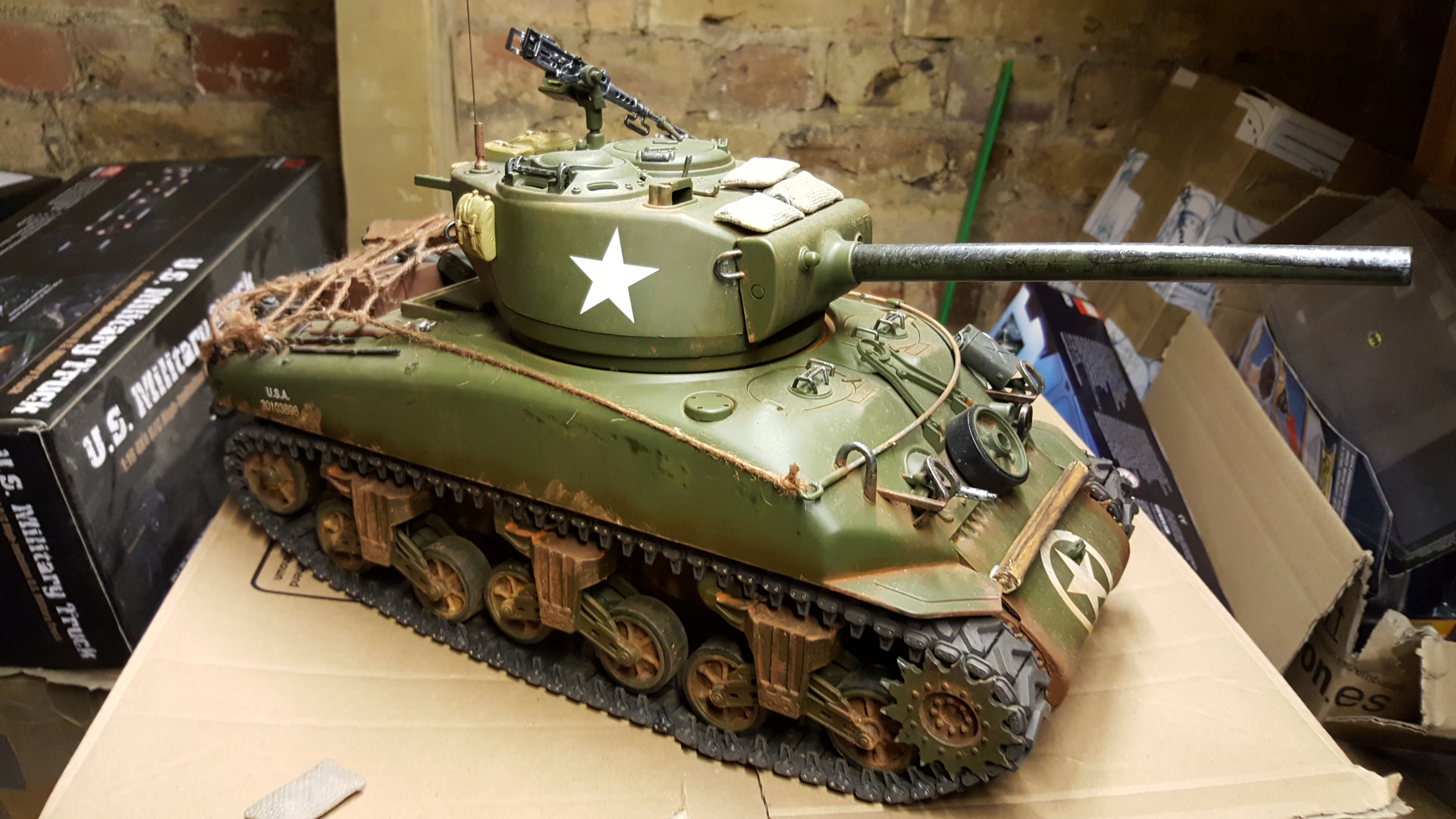 A dirty Mato M4A1 76 with its tracks on back to front.