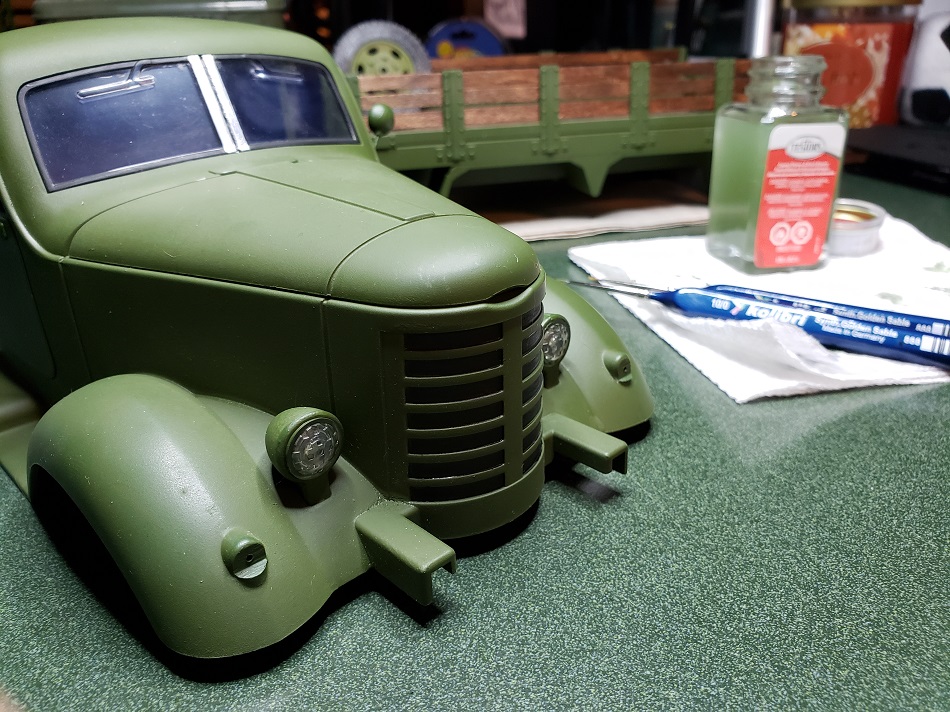 I thought I should post some more pics of the work being done on the truck. I am still awaiting window wipers and a passenger I can arm up with a few details. ( may have shown up today, post usually comes in with the better half ) So anyway, work continues! Pics ( Click to enlarge )