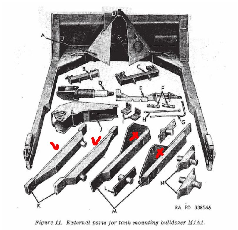As i need the wider M1A1 bulldozer because of the HVSS suspension and tracks, i need to convert it by adding 2.28mm in width to the blade.