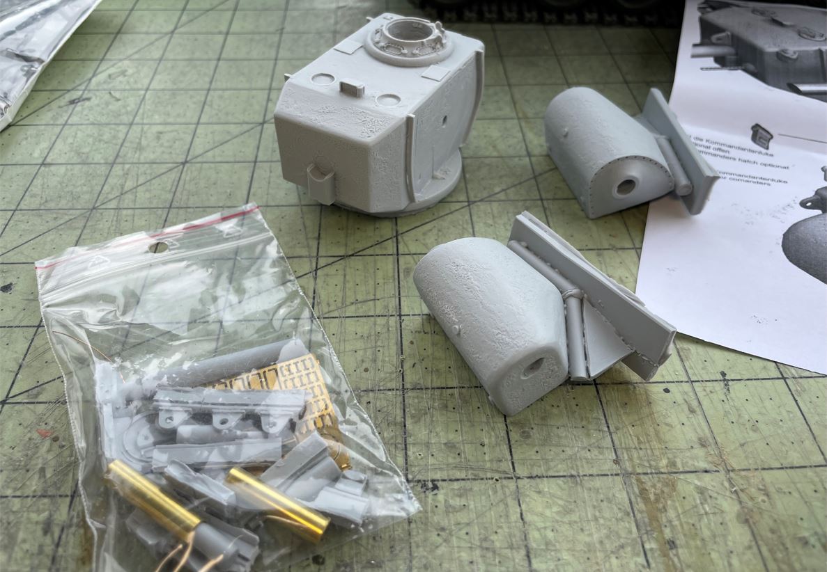 Starting with the turret, i selected a cheap Heng Long turret base for modifications, keeping my Tamiya 105mm turret intact, just in case i decide to reuse it one day.