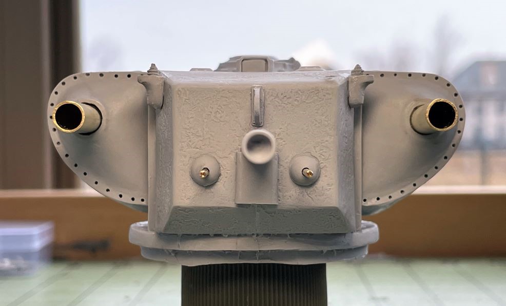 The cast turret core is done in 1.5mm plasticard in a few hours of work. Its shape is quite simplistic with flat areas, few angles and rounded corners.