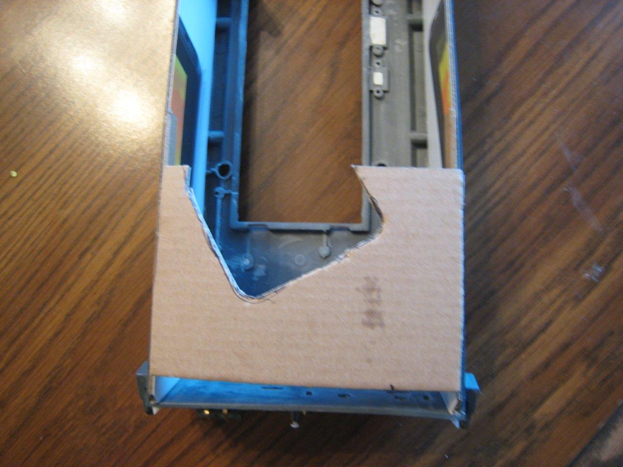 Test fitting everything. Reinforcements and switch shelf supports are held in place with rubber cement. You can see how tight it will be to get the gearboxes and the motors in and out, particularly around the return roller supports.