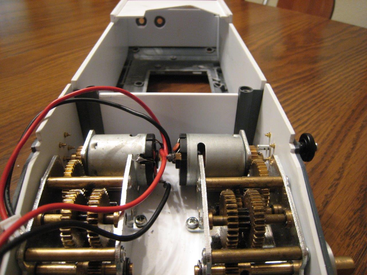 - To use the flat brass gearboxes, you’ll have to remove the two posts at the front used to secure the upper and lower hulls. Looks like another spot for magnets.
