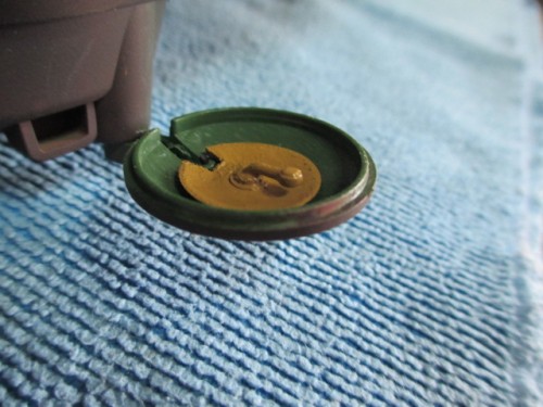 Thank you for the encouragement. Tonight's work will require the use of the magnifying Tensor Lamp at my desk. *chuckles* I will need to run to the Hobby Shop this afternoon to get some smaller drill bits for the Yankee drill. That micro chain is ...micro... I need some new flat dunkelgelb and braunviolet for these accessories as well. I want to keep the existing paint as intact as possible so no over spray of flat lacquer on this tank. I'm not even sure what this airgunned paint is? Acrylic, possibly. It has a rough, sandy feel to it and adheres well to the plastics but not so much the metals.