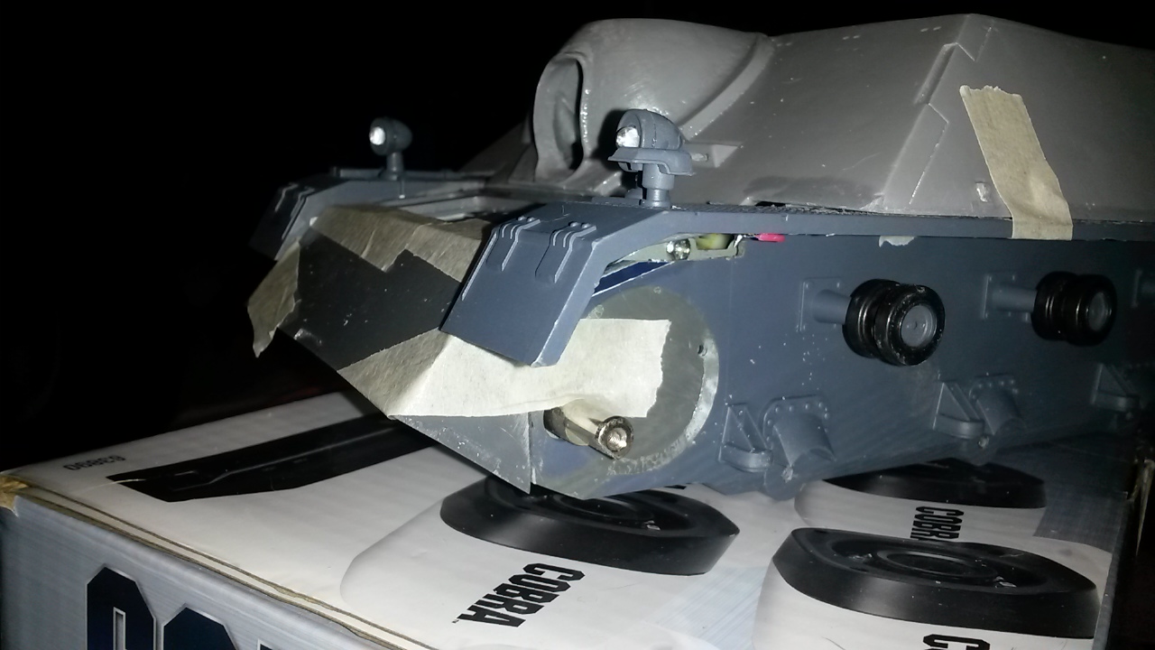I had thought about it, but the mounts are molded on, not the glued on pieces. I guess I'll just leave the 4 rollers. Might make up schurzen plates for it. If you can't fix it, Hide it!