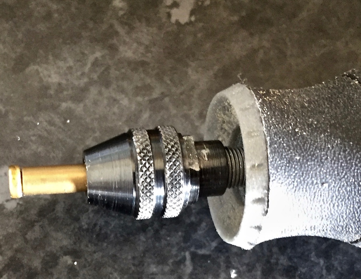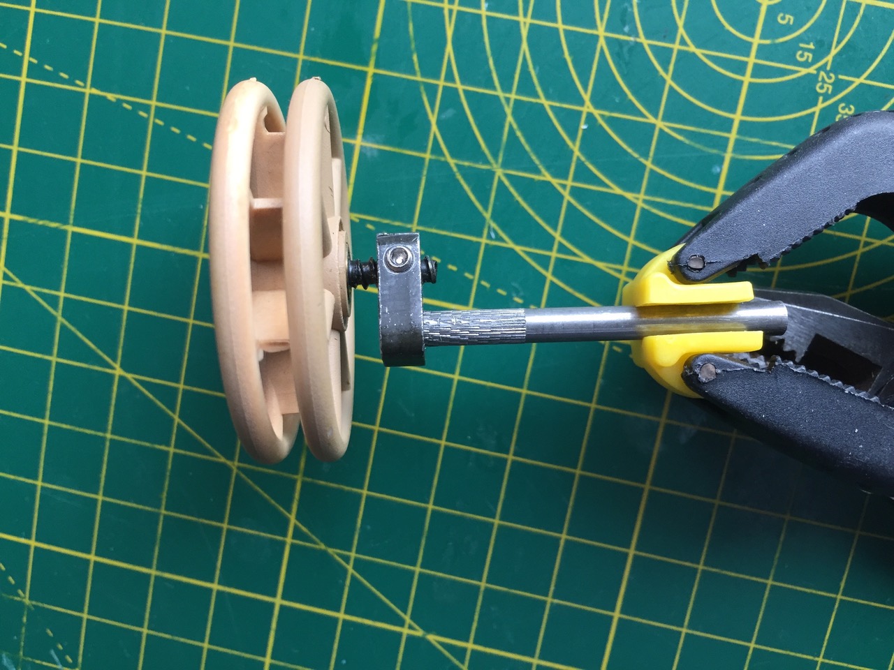 Then I used a captive metal file as the cutting edge of the improvised 'lathe'.