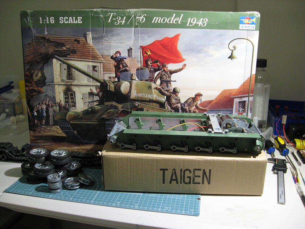 Trumpeter T-34/76 static kit; Taigen T-34/85 lower hull, wheels and tracks; IBU2; Asiatam recoil/elevation unit; TARR smoker.