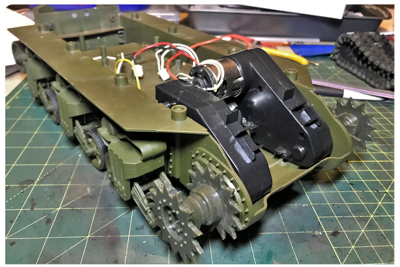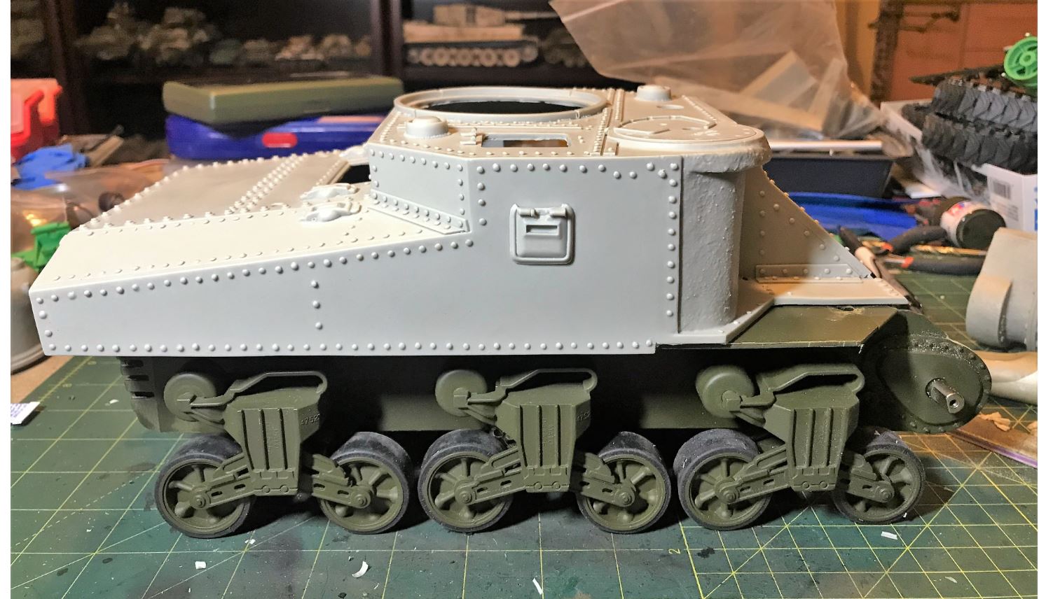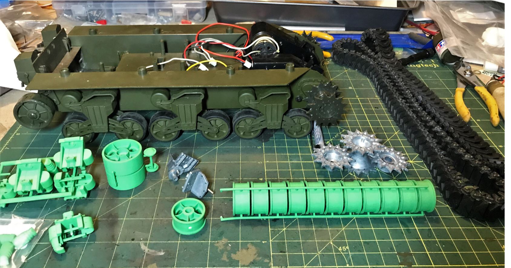 Next step is to convert the other bogies and properly install the Vandra upper up on the chassis. That will set the stage for the surgery on the upper hull.