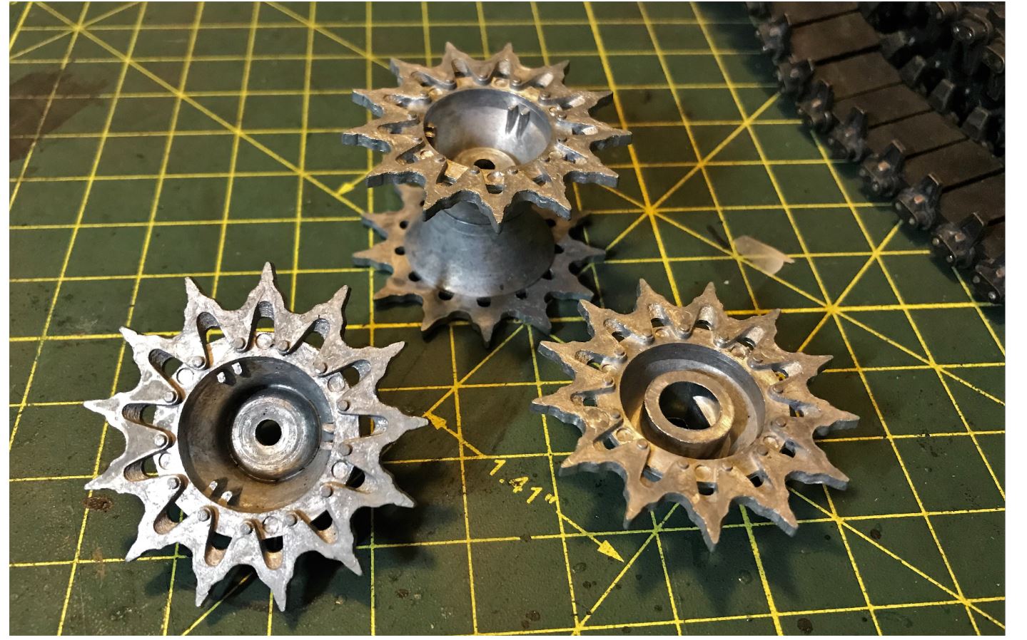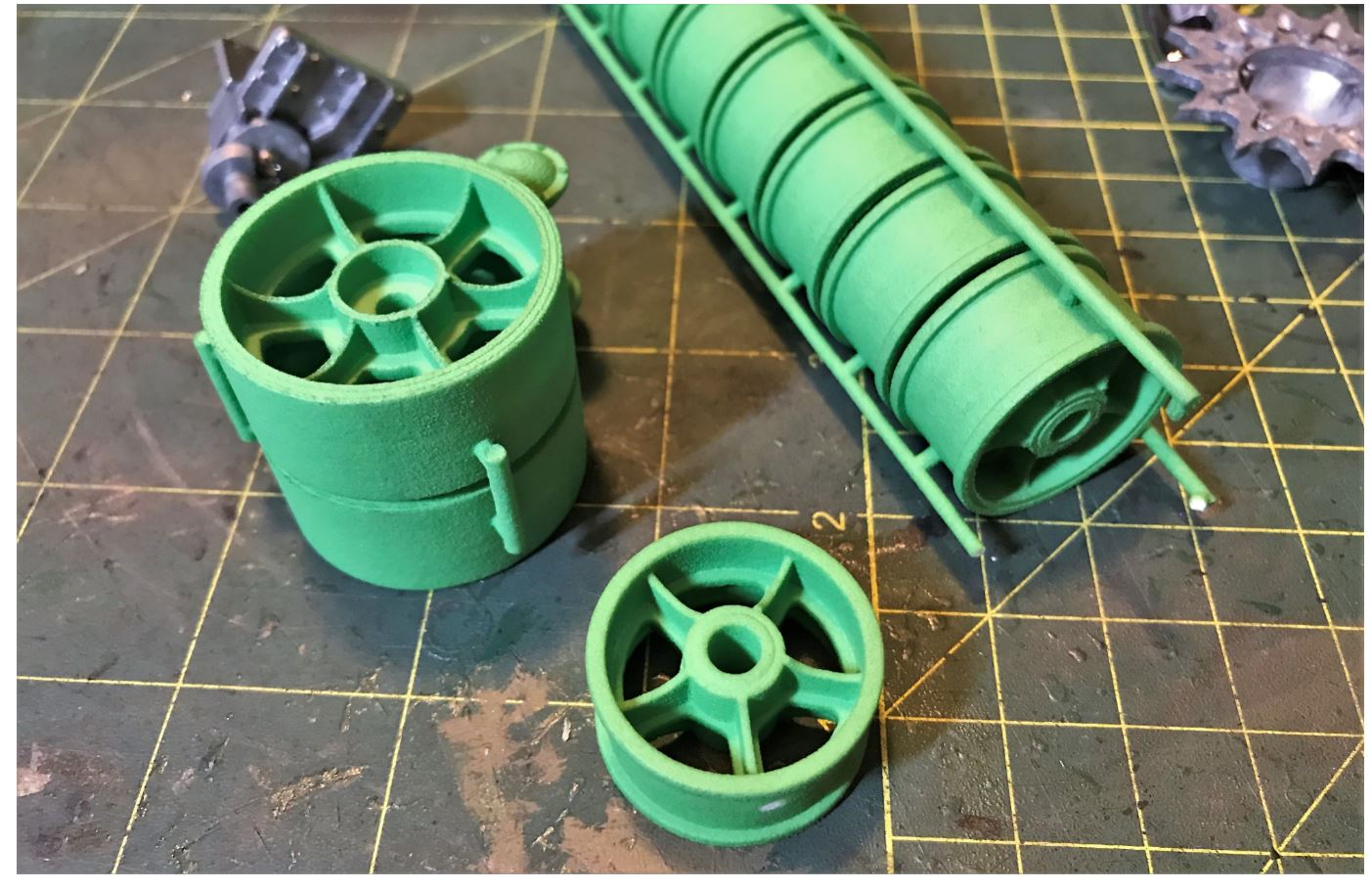 These are Shapeways spoked roadwheels to match the MATO size and rubber ring, and spoked idler wheel