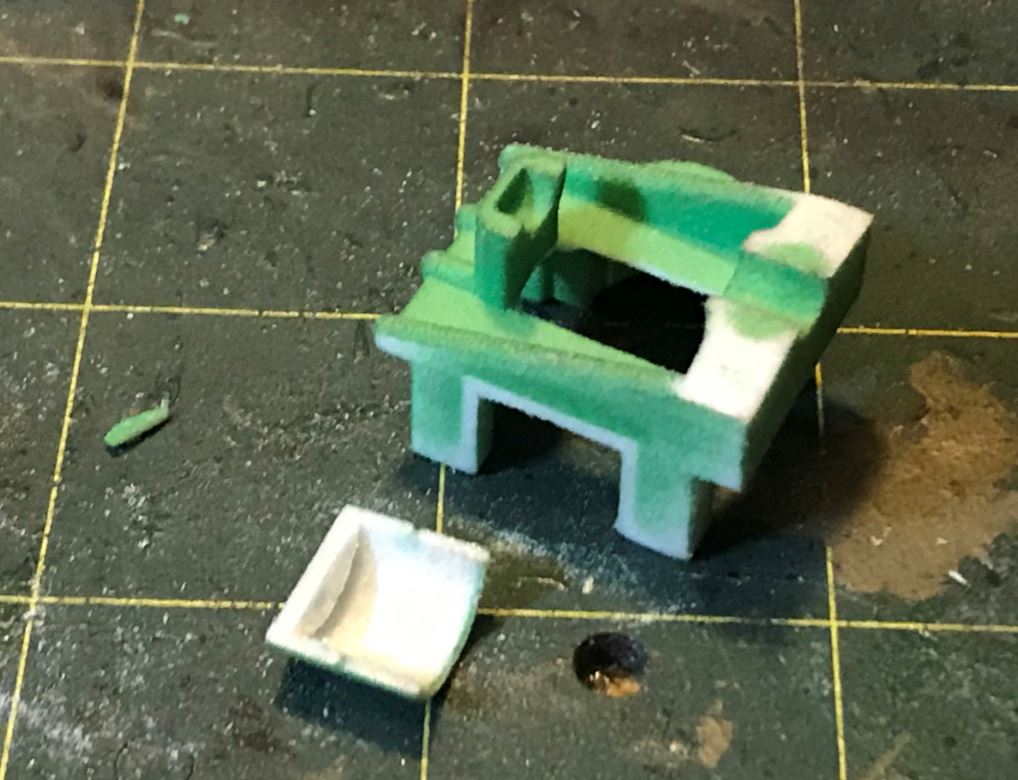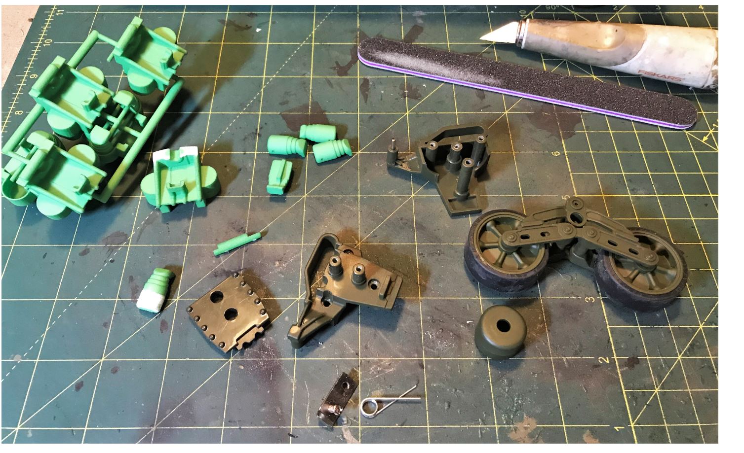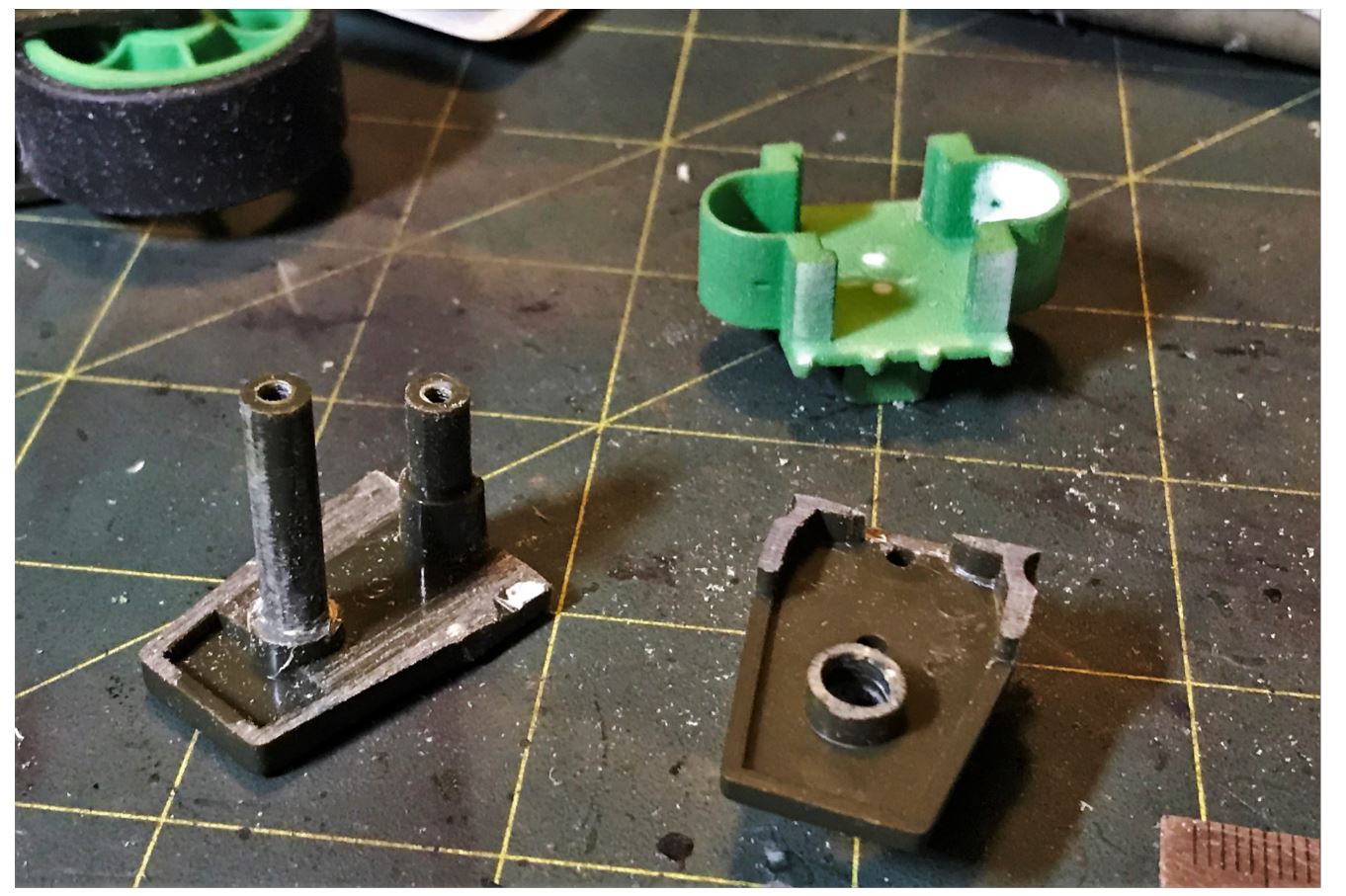 The central core of the Mato bogie is cut in pieces in preparation for fitting the Shapeways conversion that were designed for Heng Long.