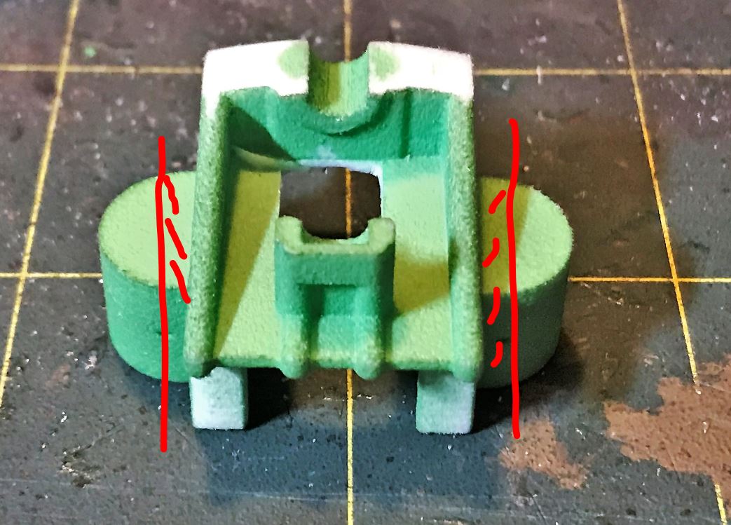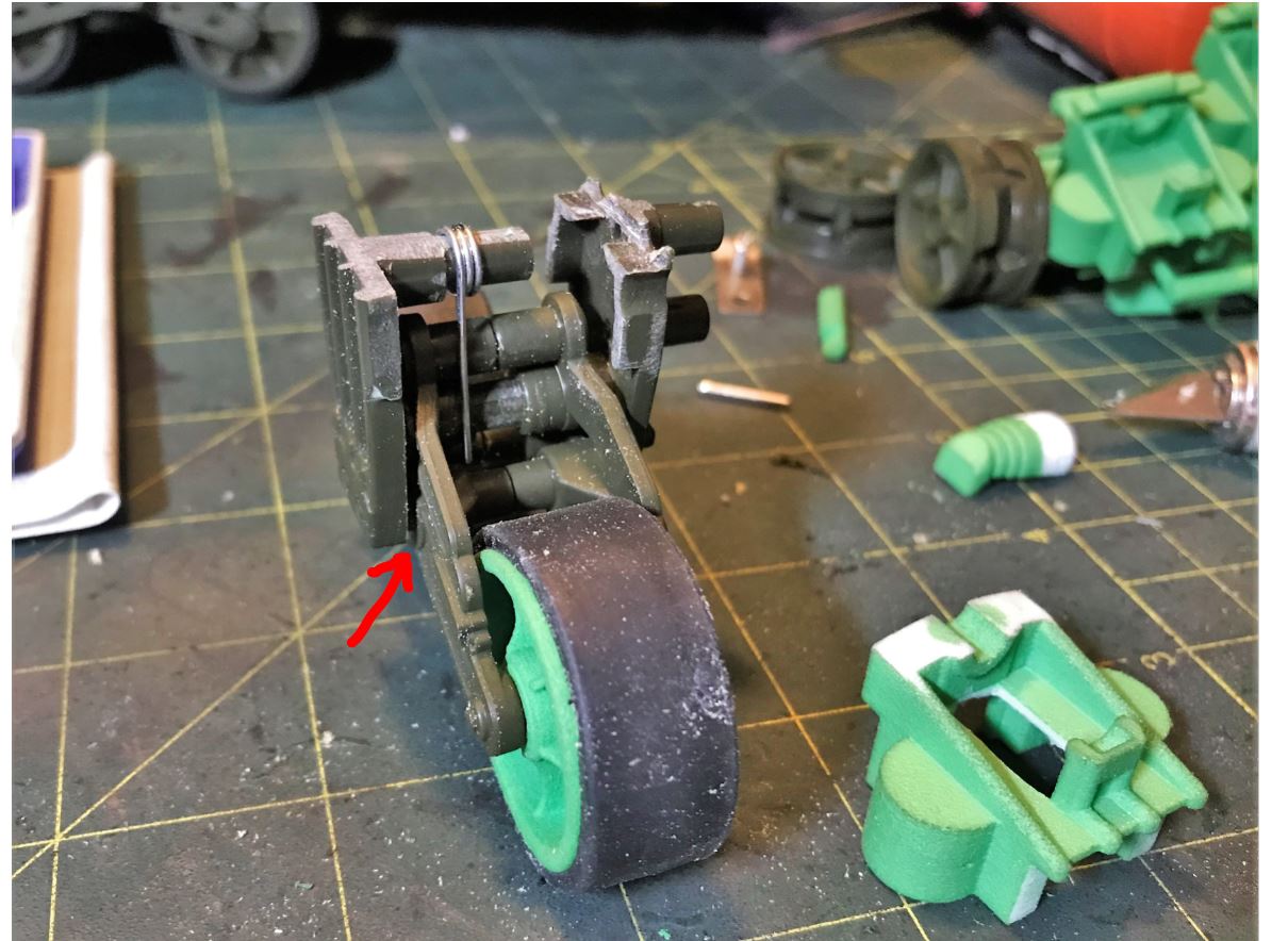 The Mickey mouse ears for the suspension spring housing on the Shapeways units are way too big and must be cut to show them with no more than 4mm in width, ideally 3mm for each spring housing cover.