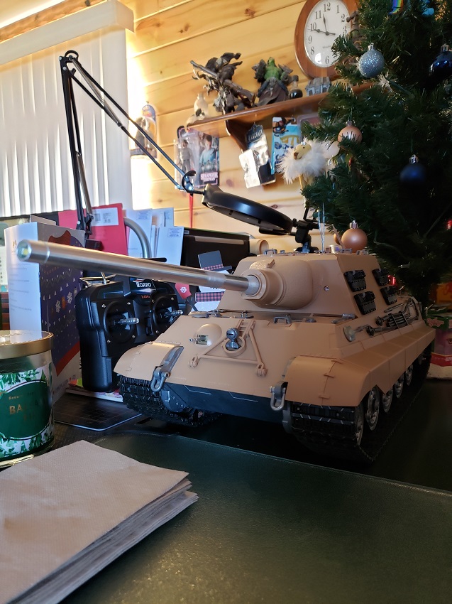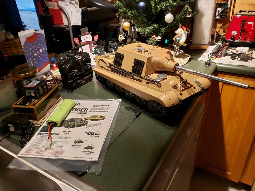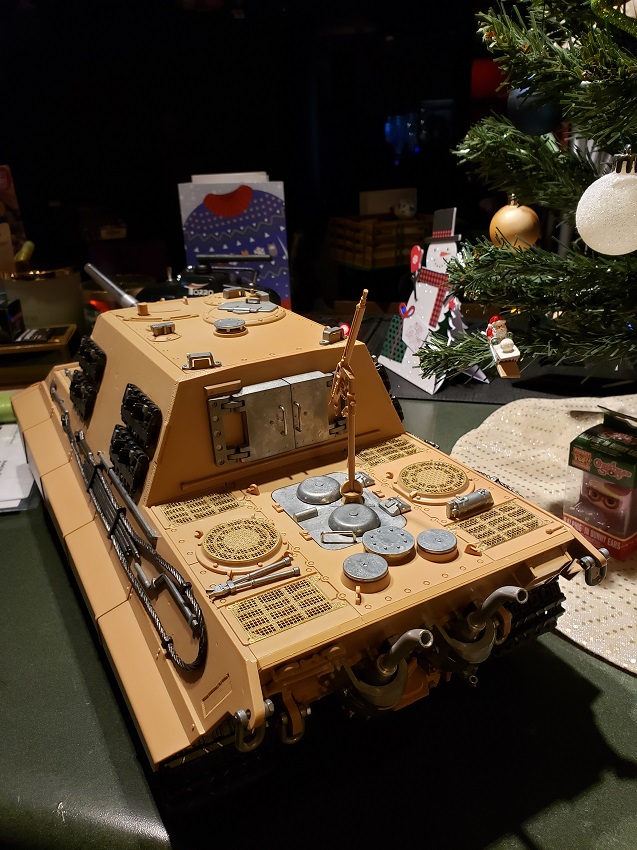 What a great Christmas present! One of the nice things about having a factory-made Jagdtiger, is not having to try and "stretch" a Tamiya King Tiger aluminum lower hull. I am sure you will create another masterpiece with this one!