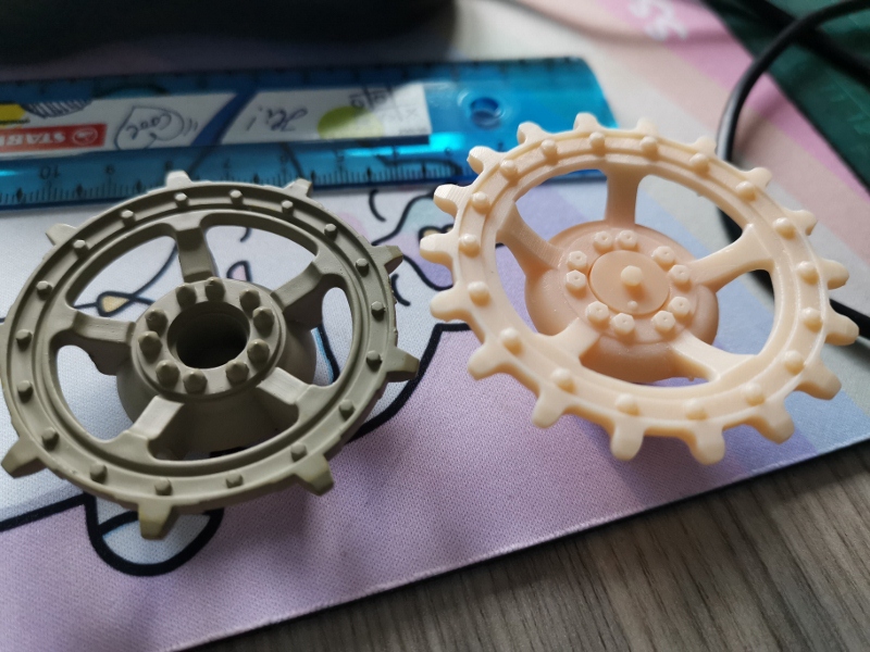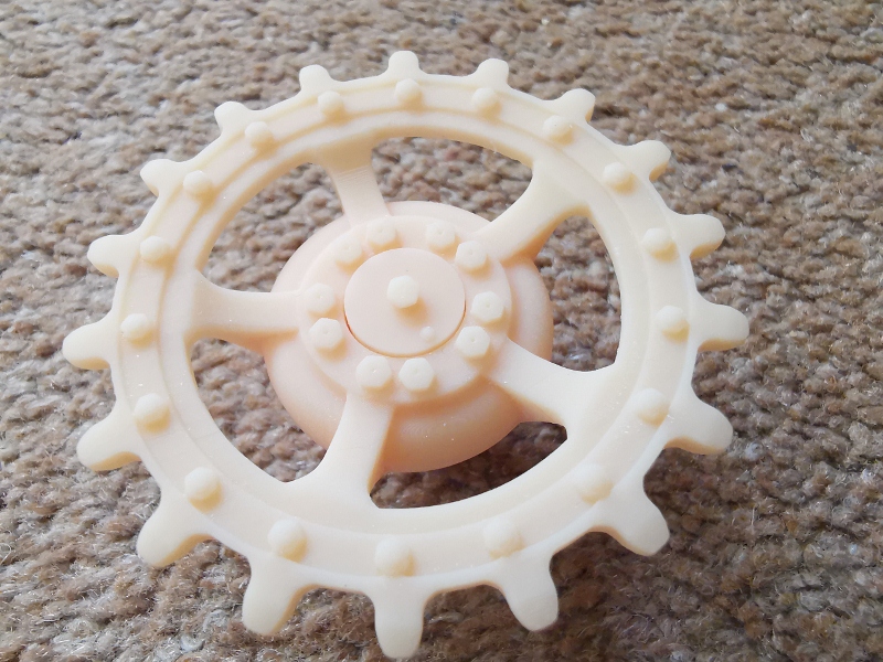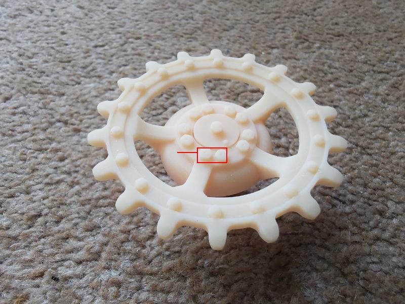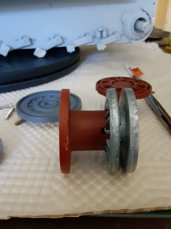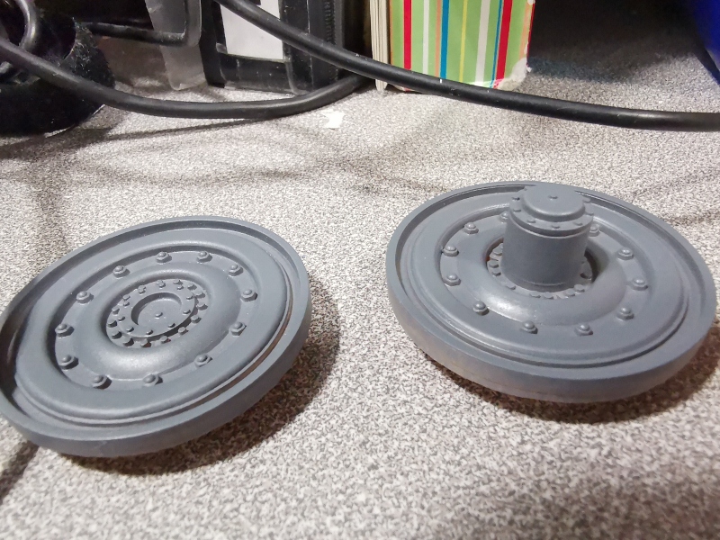 Before going to 'press' making 14 outer road wheels at potential significant time, effort, resin product (and money), the theory was put into practice by making a pair of the unique 8-spoke Panther II idlers.