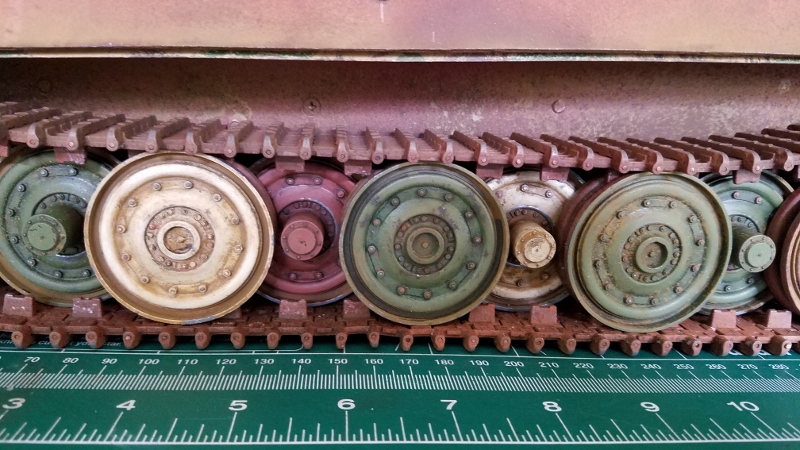 The interior wheel hubs, unique to the Panther II are courtesy of our own Woz who was kind enough to make these per my measurements and which are now available on Shapeways. I had used them on another tank, a hybrid Panther F and was pleased with the effect.