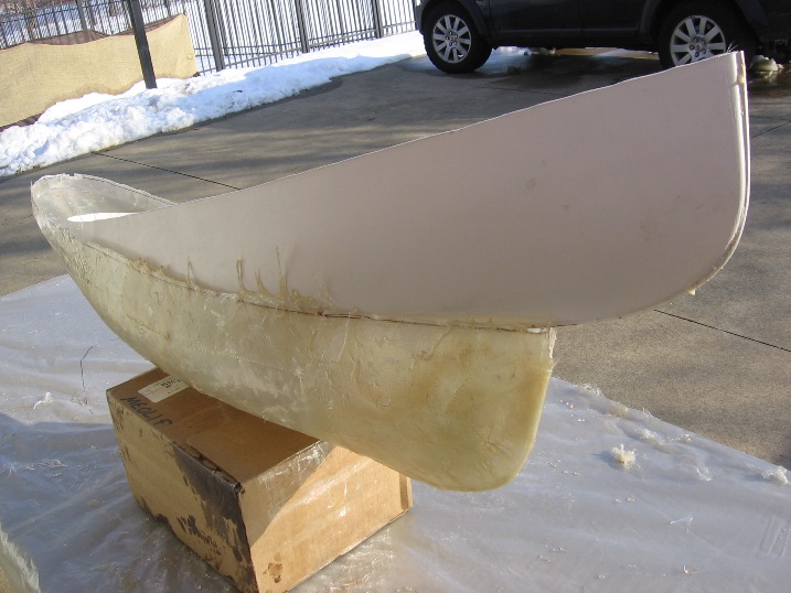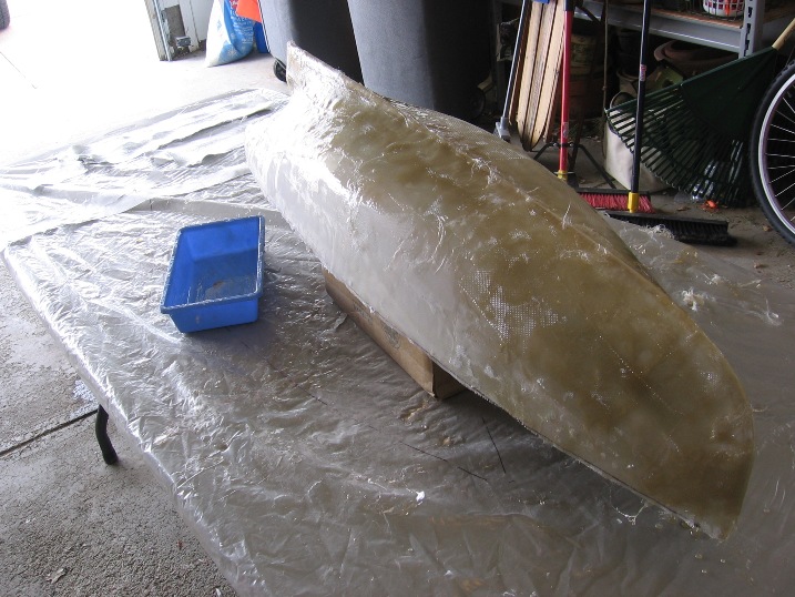 so it was sunny enough to give the hull another two glass coats..and while still a little flexible...I popped the form out..no issues at all