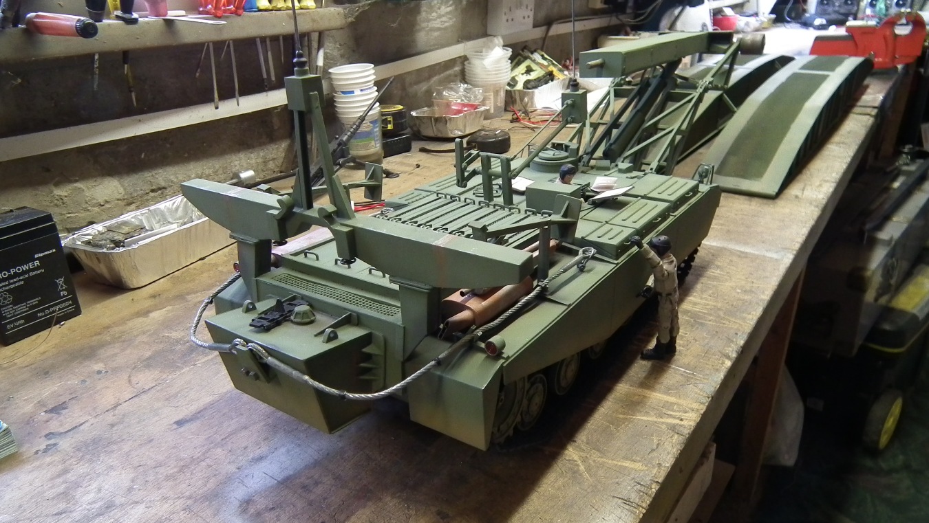 Congratulations, Sir, on an excellent build completed. I see plenty of wonderful, scratch built detail that you have added, visible even to the most cursory of glances. That it functions and drops the Bridging Unit as it is supposed to in scale is a testament to your skillset. Looking forward to some video of this as completed.