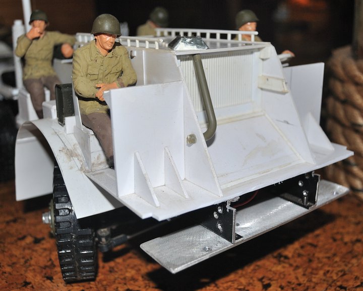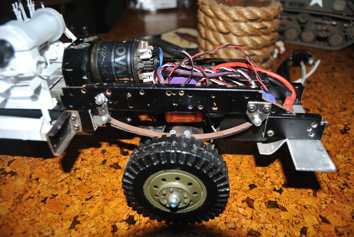Impressive build for sure, very unique. Do you have a paint scheme or is Olive Drab the correct color? The transaxle in the rear where did it come from? Could you show a close-up of the motor and drive gearbox? I have a build in mind and this is something I know little about,I would be grateful for your help.Thanks Blake