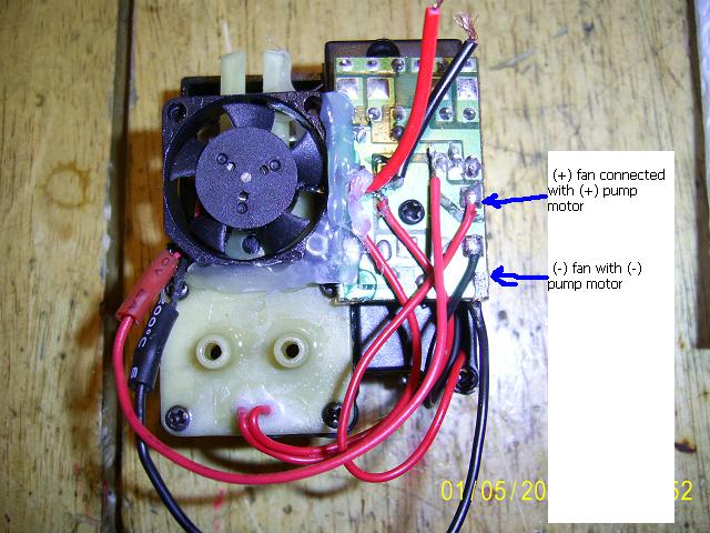 The mod. is quite simple , and since it was a prototype ; I didn't go fancy as to hold the mini fan ; I just used the hot glue gun ... :D :D