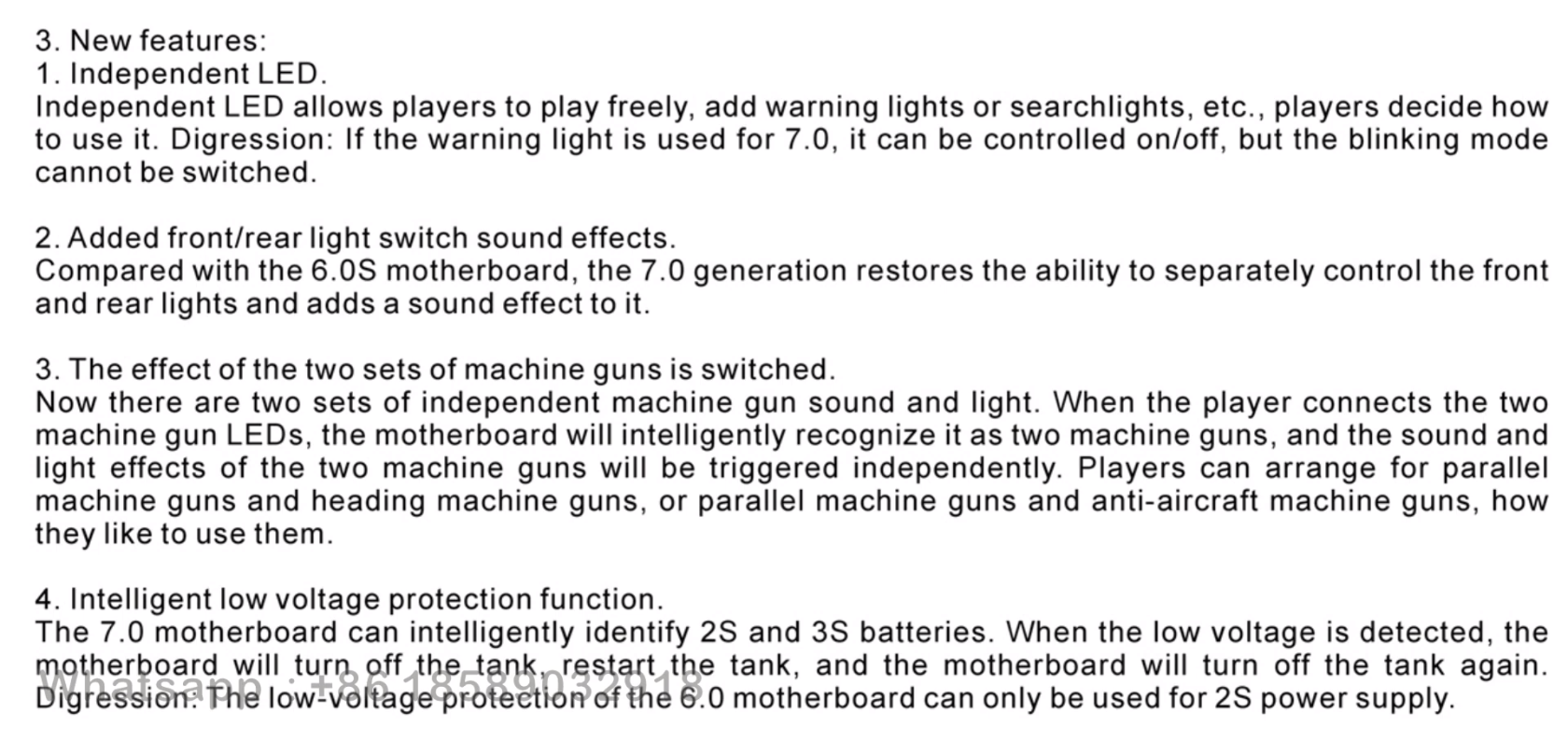 - low voltage protection for 2s and 3s packets - MFU detects which packet is connected