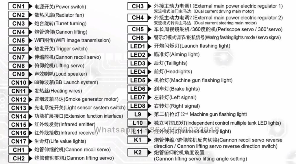 - the ability to adjust the servo angle of the main gun elevation and to reverse the direction of operation for this servo ( K1 and K2 switch/trimmer? )