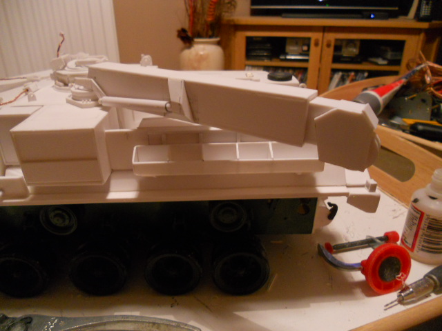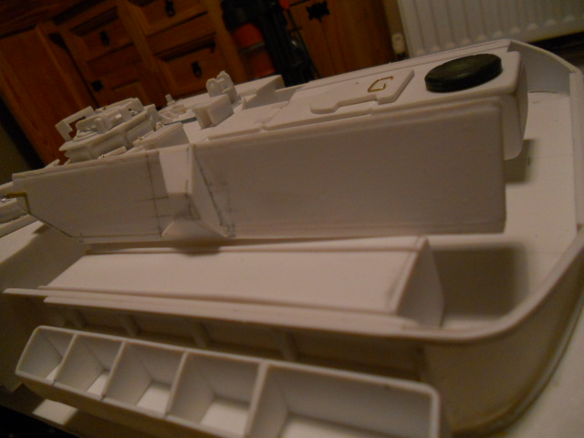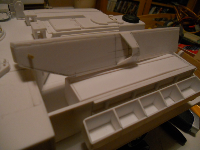 There are two lugs at the front that slot into the mounts on the roof, just like the real thing. There is plenty more to do on this part though, so progress will be slow. Mysteriously I seem to have a flawed sheet of 3mm styrene, it refuses to snap cleanly, never had this happen before?