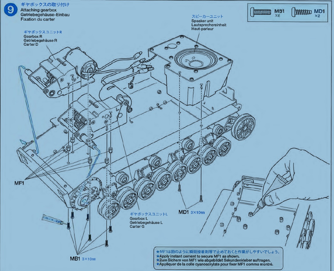 sassgrunt wrote:It's been awhile since I had to install Tamiya standoffs in between the gearbox and the hull floor, but if I remember correctly, I think the standoffs have a male 4mm thread that screws into the bottom of the gearboxes, and then you run 3mm screws up through the underside of the hull into the female end to secure them. (If you bond the standoffs to the hull first, I think it's hard to get screws into them from the top, because of all the gears in the way). Maybe they've changed it since I last messed around with one. Or - advanced age being what it is - maybe I missed the boat completely and have no idea what I'm talking about....wouldn't be the first time.