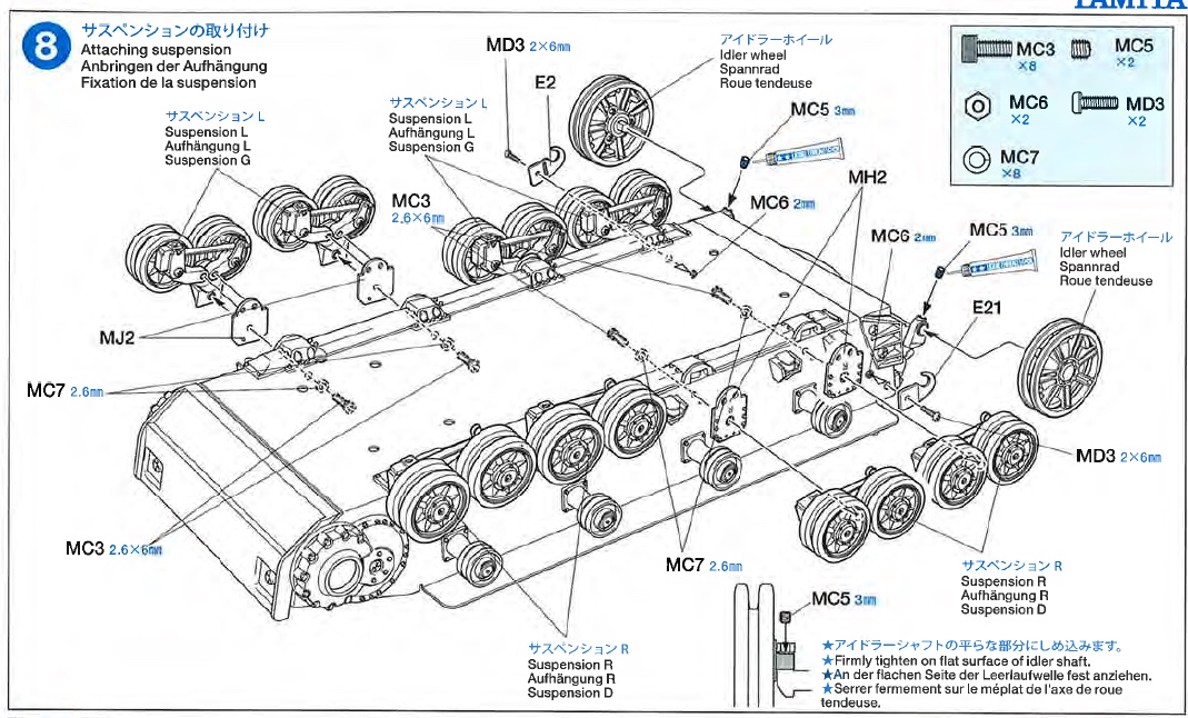Here, in the Tamiya manual, you can see some of the essential differences in the way suspension components are mounted.. B|