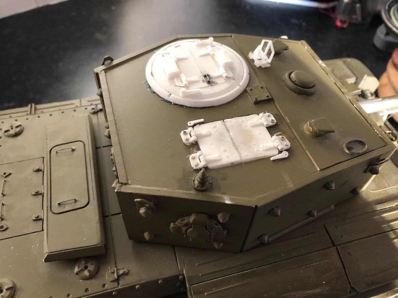 It's been quite a while since did anything with the Cromwell. It runs, and so on, but lacks a few distinguishing details like tools, etc. It's also in need of a proper paint job, with decals added and so on. While it won't get a freshen up, and weathering paint job, now that Winter has blown into the Highlands ( with gale after gale :eh:) I can at least fix a few things I wasn't happy with. To this end, I've fitted new openable hatches; scratch-built new Besa gun mountings, and given the Commander (when I get one :/ ) his very own gunsight. Lucky man :thumbup: