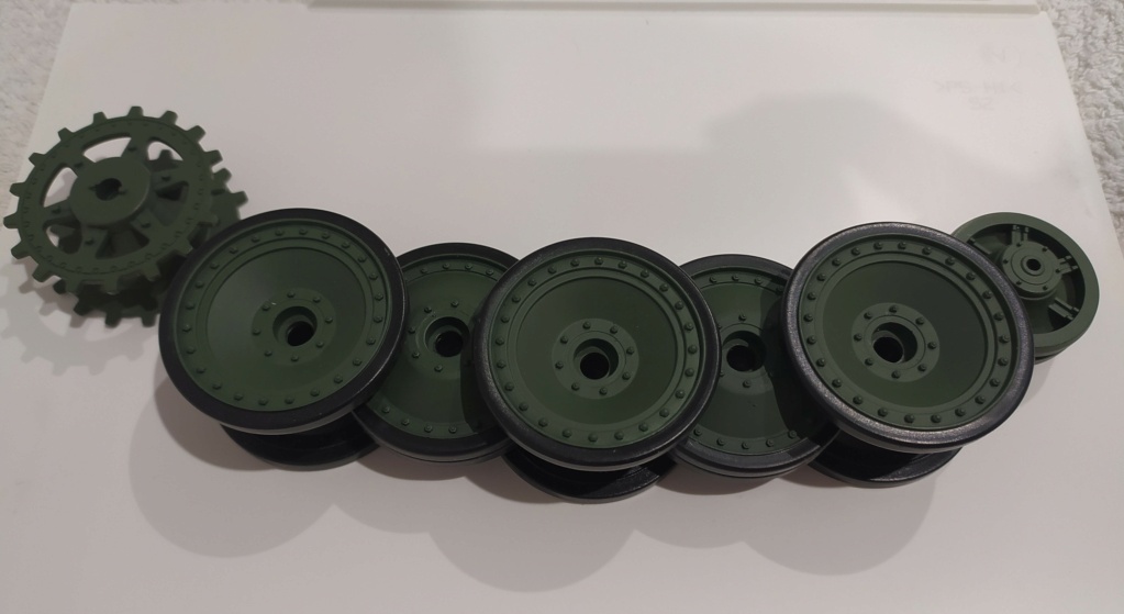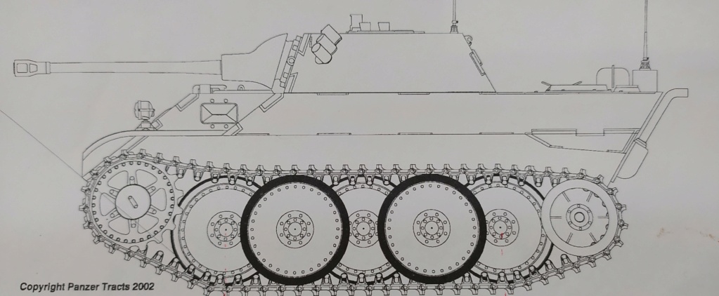Continuing with the suspension, the layout according to blueprint is sprocket + 5 overlapping wheels (2 doubles and 3 singles) + idler (copyright in the picture):