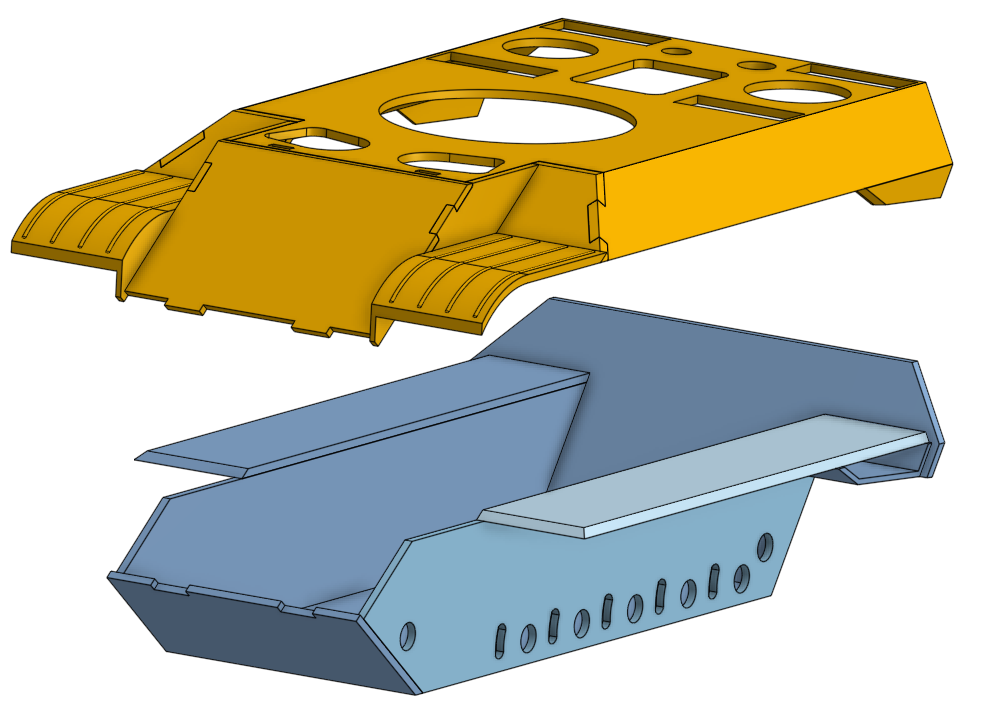 Working on the CAD design, this would be the leayout of upper and lower hull to access electronics: