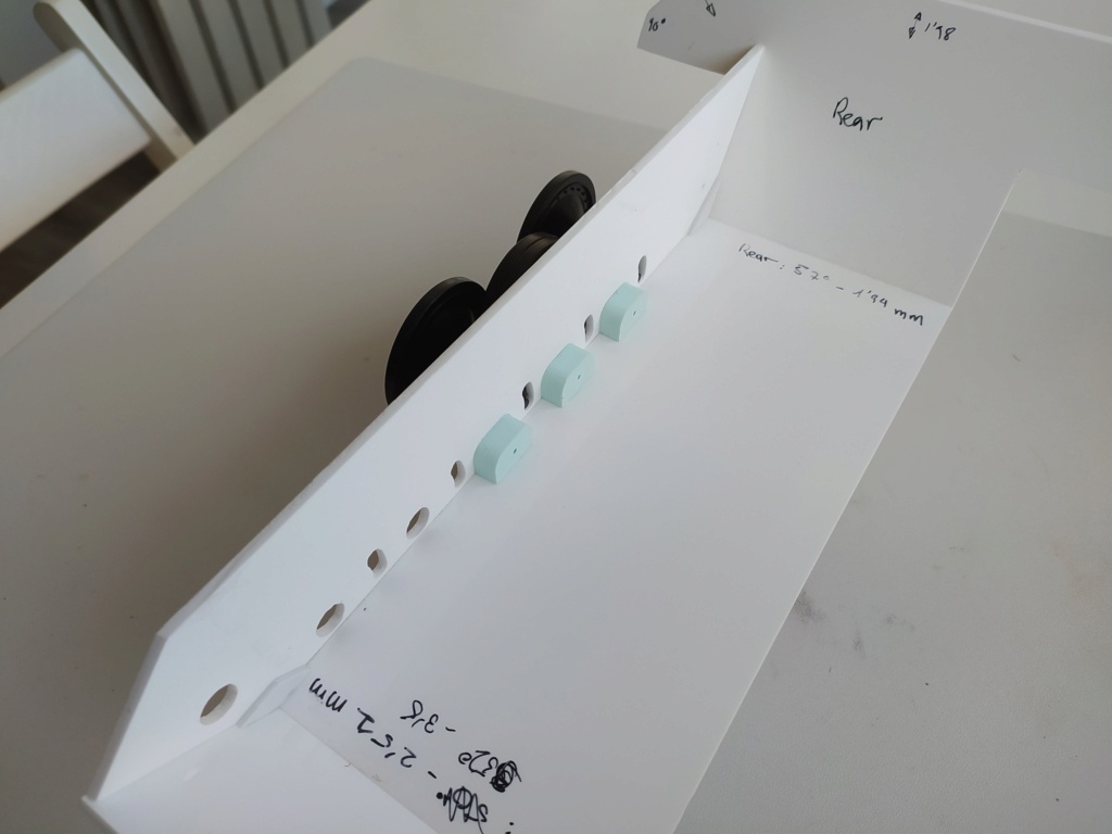 For now I have glued three wheel axle brackets to see if they will hold in place with the glue I have used (revell contacta profesional, the blue one):