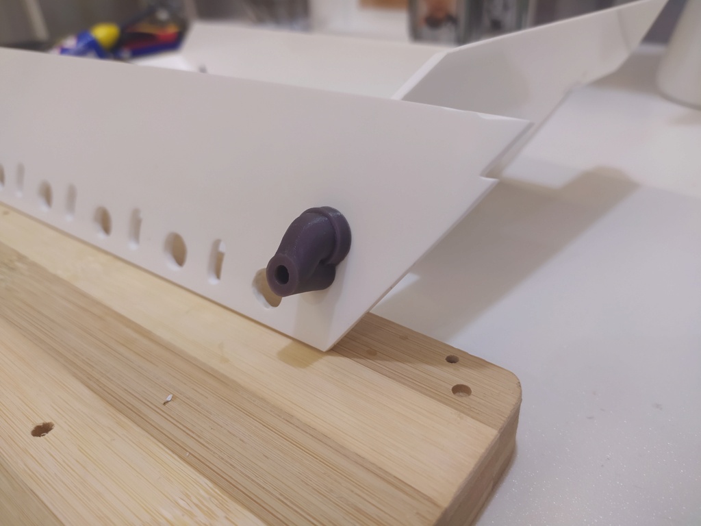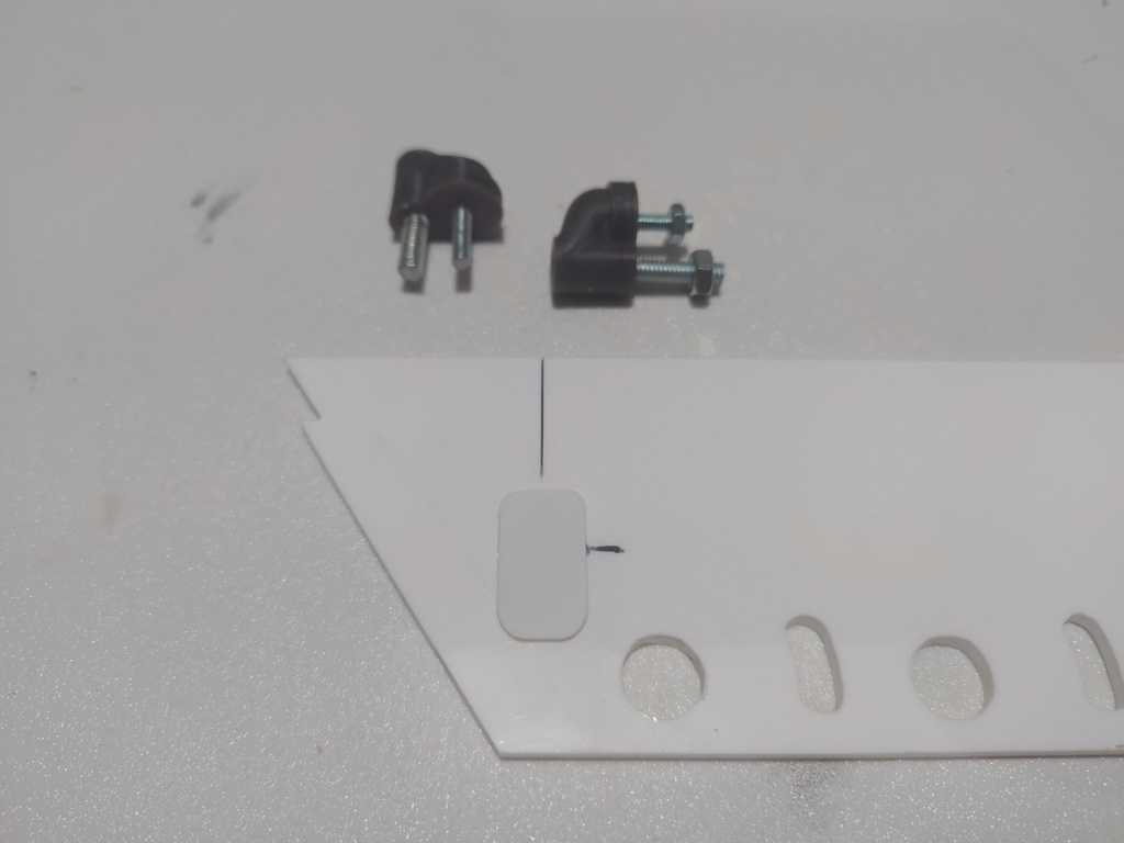 Once the holes were reworked with the drill, my first option was to glue it to the side and from inside the hull use a screw to give it more support but it has not held and has come off, so we have gone to plan B: metric screws 3 and 4 and nuts to hold the piece, with a small flat styrene plate to give more strength to the whole. The good thing about this option is that it is not necessary to glue the piece and in case of breakage I will be able to change it easily: