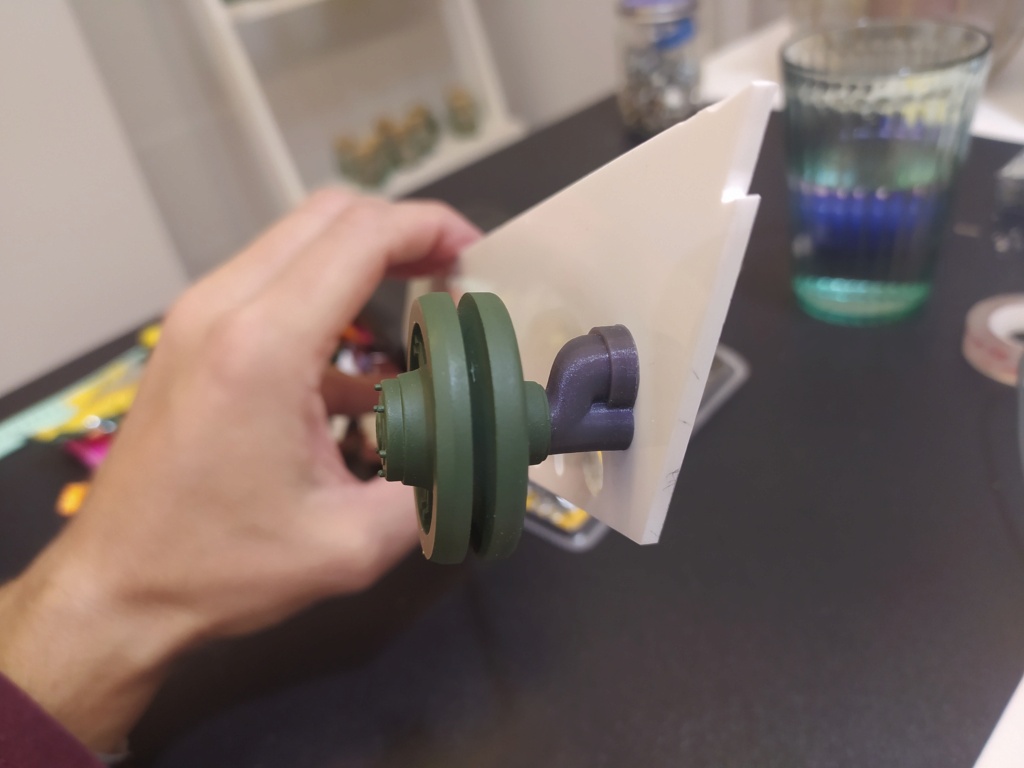 I left the construction on the redesign of the arm that holds the idler wheel. Well, it is now fixed in place but I had to improvise along the way. With the redesign I think I have totally succeeded, now the piece is more robust. I 3d printed with 0.1 layer height and 100% fill: