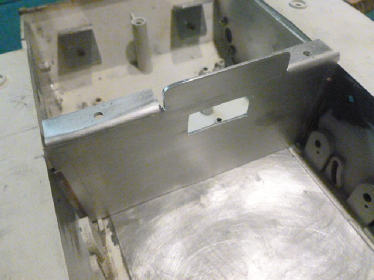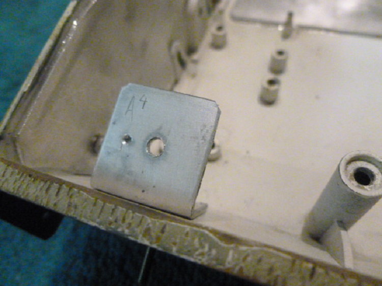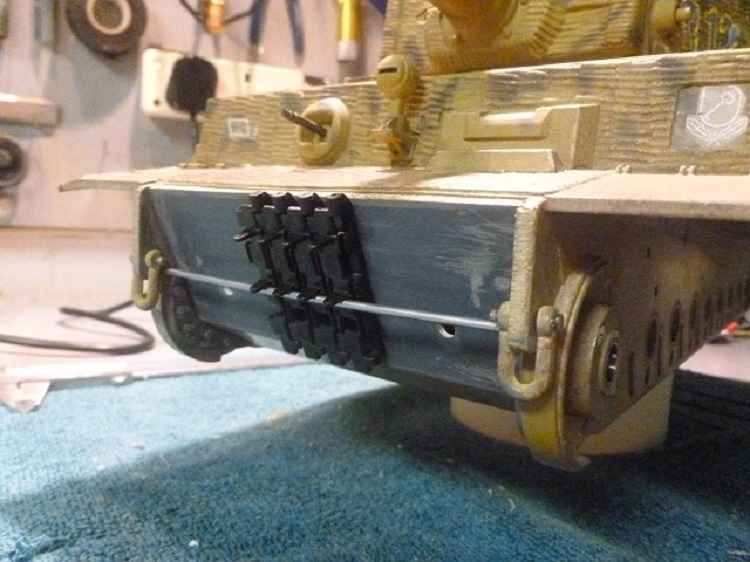 engine decking as a guide. Historically the Mid-production Tiger's had the Feifel air filter cannisters and tool box removed from the rear hull, the styrene saved me the job of filling in the holes with milliput.The two holes on the right lower side are to mount the jack.